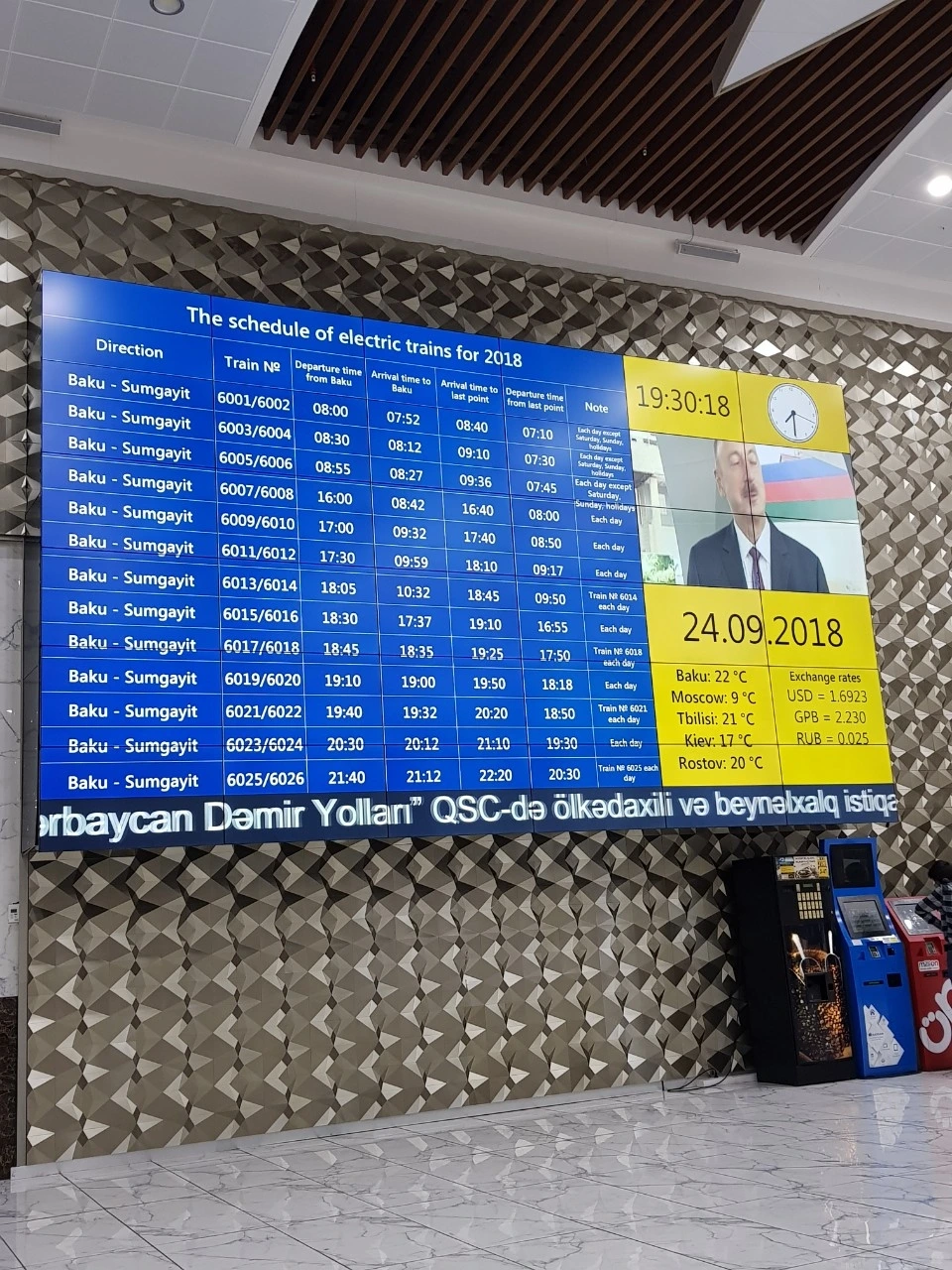 바쿠 기차역 광장은 넓고, 깨끗했다. 아제르바이잔 사람들은 청소를 정말로 열심히 했다. 가는 곳 어디든, 어떤 건물이든, 좁거나 넓은 것에 상관하지 않고, 개인집이든 공공건물이든 관계없이 부지런히 청소하는 사람들을 만날 수 있었다. 바쿠역 광장도 흘린 밥풀도 주어 먹을 수 있을 정도로 깨끗했다. 신발을 신고 걷기가 미안할 정도였다. 깨끗하기는 대합실도 마찬가지였다. 넓고, 크고, 세련된 대합실은 무거운 짐을 끌고, 지고 온 여행객들이 차마 앉기에도 민망할 정도였다.