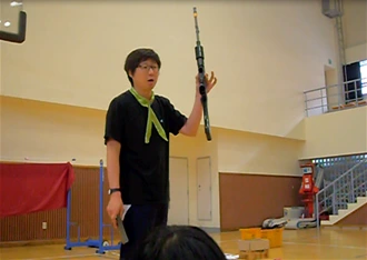 허교사 : 이건 우리나라 군인들이 사용하는 총입니다. 매우 위험한 총입니다. 물론 군인들이 사용하는 총은 쇠로 되어 있구요, 왜? 총알 자체가 쇠니까. 하지만 이 총은 플라스틱으로 되어 있습니다. 왜?