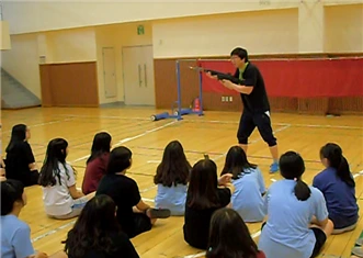 허교사 : 따라서 이 총을 가지고 사격을 하는 경우에는 누구도, 어떠한 경우에도 총구가 친구를 향해서는 안 됩니다. 절대. 항상 하늘과, 땅과, 표적지만 향해야 합니다. 알겠죠?
