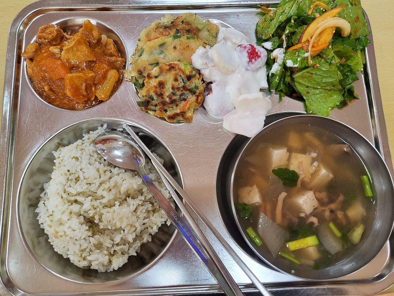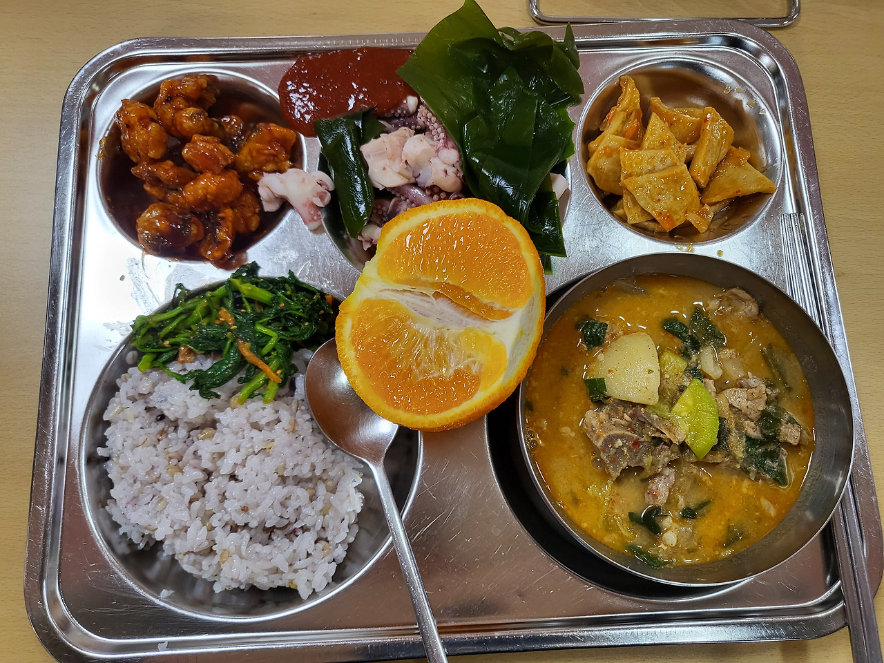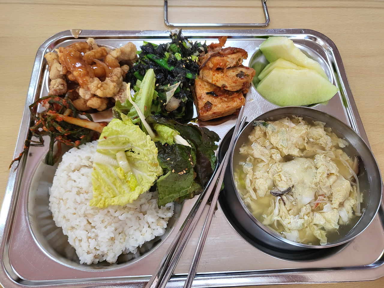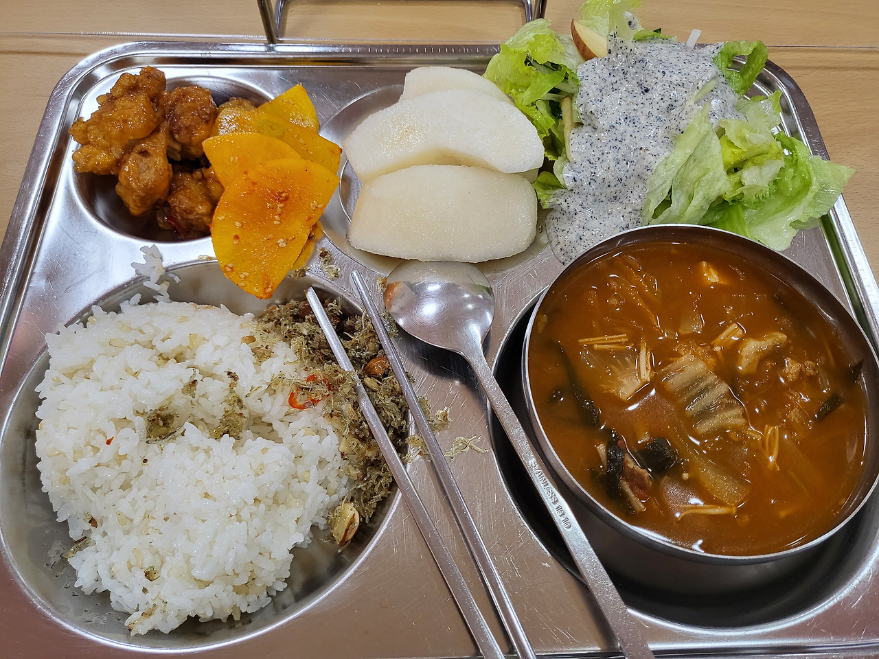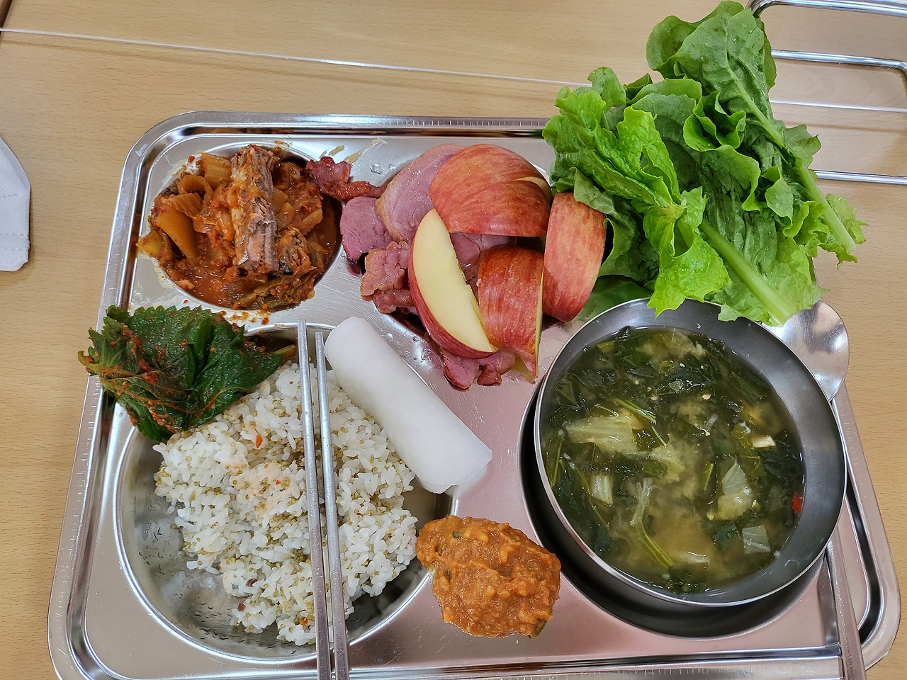 3월에 학교로 전출을 와서 받아본 급식은 한결같다. 사진만 보면 선생님들만 따로 더 챙겨줘서 그렇겠지 라는 편견을 가질 수 있을 정도로 급식이 잘 나온다. 아이들도 똑같이 나오지만 선생님들은 김치 몇 가지 정도 더 가져갈 수 있게 챙겨주시는 수준이라 우리 반 아이들도 우리 학교 급식 최고를 외친다.