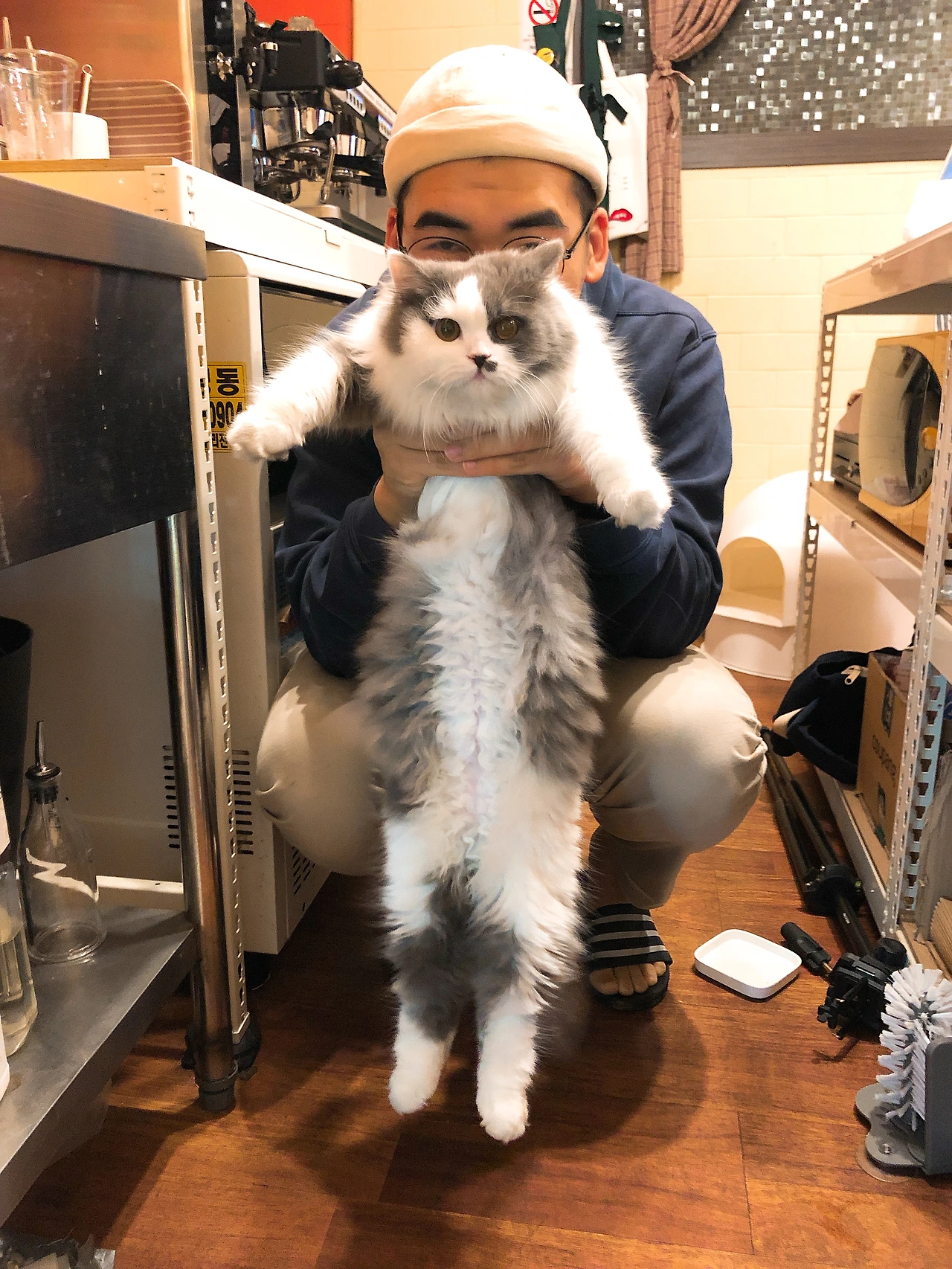 쭈그리고 앉아 양손을 내밀고 애타게 하맹이를 부르고 있다. 카페에 웬일로 사람들로 가득하고 시선을 모두 나를 향해있다. 하맹이가 골골거리는 소리를 내며 나에게 달려온다. 만족스러운 웃음을 지으며 안아주려는 찰나에 나를 스치듯 지나쳐 사료를 먹는다. 그리고 이내 고개를 들고 나를 한번 쳐다본 뒤 다시 사료를 먹는다. 명백하게 나를 기만하고 있다. 손님들이 우스꽝스러운 장면을 보고 피식거린다. 사실 난 평소에 굳이 하맹이에게 사랑을 갈구하지 않는다. 서로 쿨하게 모르는 척 지나칠 때도 있고 어쩌다 기분이 좋으면 내가 혹은 하맹이가 가볍게 서로의 몸을 터치하는 정도의 선을 지키는 쿨한 인간과 고양이의 관계다. 그런데 지금 내가 구질구질하게 하맹이에게 관심을 요구하는 건 창가 자리에 앉아서 웃고 있는 여후배 때문이다.