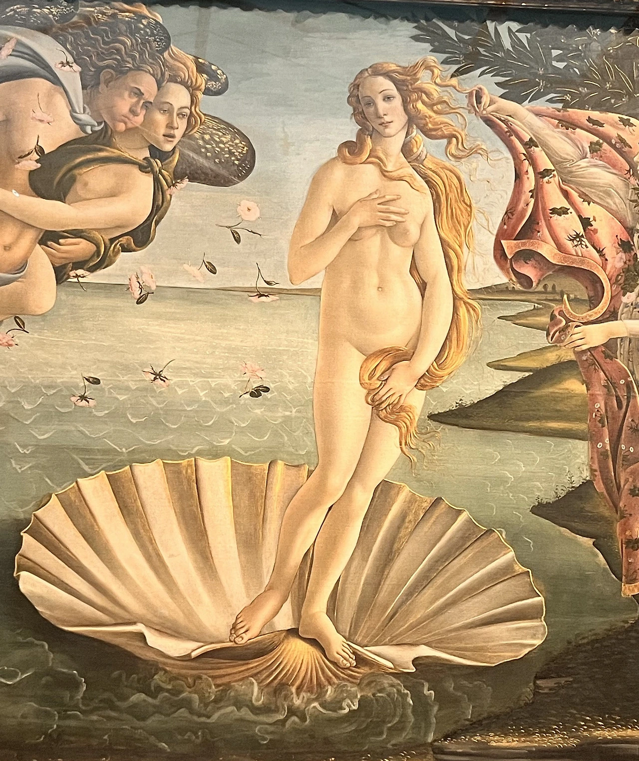 오른쪽에서 망토를 내미는 계절의 여신은 사회적 질서와 페르소나를 상징한다. “이제 자연을 떠나 사람들 속으로 들어오라”는 말 없는 요청 앞에서, 비너스는 아직 완전히 응답하지 못한 채 서 있다. 우리는 준비되었는지와 상관없이 삶이라는 장소로 밀려 들어간다. 탄생은 경이롭지만, 동시에 보호받던 세계로부터의 추방이기도 하다. 그래서 우리는 드러내면서도 가린다. 아름다움을 펼쳐내면서도, 가장 연약한 부분은 조심스럽게 숨기며 살아가는 것이다.