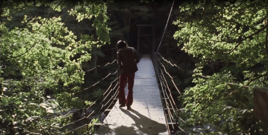 타케루는 흔들 다리에 오르고 아래에서 타케루를 올려다보는 미노루와 치에코. 억눌려 있던 세 사람 각각의 혹은 사이의 흔들림이 외면적으로 분명히 드러나는 순간이다. 화려하고 독립적인 삶을 살아가는 동생 타케루에 대한 미노루의 질투. 아버지의 인정을 받고 안정적인 생활을 이어나가는 형 미노루에 대한 타케루의 질투. 촌스러웠던 타케루가 세련된 복장으로 포드를 몰고 나타나 체념하고 살아내던 현실이 견딜 수 없어진 치에코가 타케루를 향해 품은 선망 섞인 질투. 세 사람이 이룬 질투의 삼각형이 허공에 떠 있다.