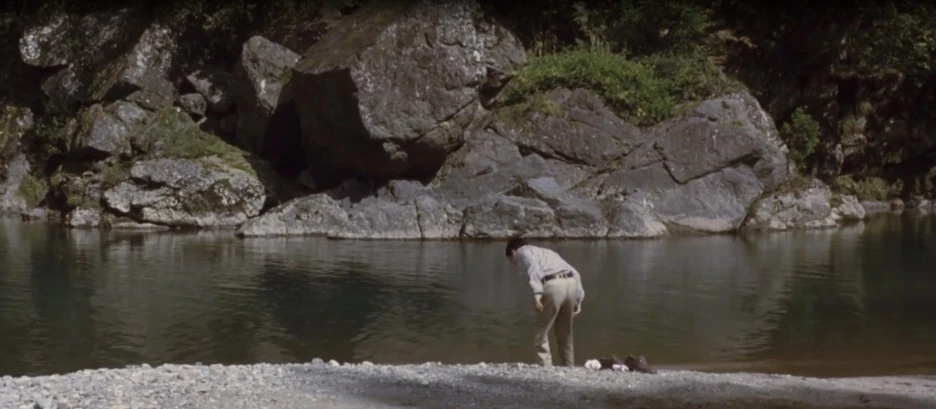 미노루 홀로 강속에서 뛰어놀고 치에코와 타케루는 자갈밭에 서 있다. 갑작스레 시작한 치에코의 하소연. 갑갑한 마을을 떠나 타케루와 도시 생활을 할 걸 그랬다는 후회. 세련된 타케루와의 만남이 지금까지 생활을 더 이상 지속할 수 없게 만든 것 같다는, 도전 같은 선언. 전날 밤 치에코가 타케루를 받아들인 건, 타케루를 향한 단순한 열정은 삶에 대한 보다 복잡한 미련 때문이 아니었을까. 치에코의 말에 제대로 대답도 하지 않은 채 강가에 두 사람을 남겨두고 산 위로 올라가 버린다.