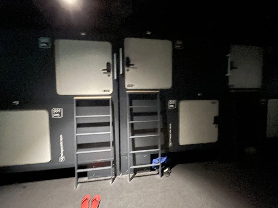 그 와중에 캡슐호텔 퀄리티는 기대 이상이다. 세련되고 깨끗한 실내 디자인은 그다지 편리할 것도 없는 캡슐호텔이 가성비 높은 곳처럼 보이게 만들었다. 샤워시설도 널찍하다. 캡슐은 답답하긴 하지만 잠을 제대로 못 잔 지 거의 24시간이 지났으니 기절하듯 잘 것 같다. 아래 캡슐호텔 사진을 몇 장 남겨둔다. 여행일지를 쓸 목적이라도 없었으면 아마 한 장도 찍지 않았을 것이다.