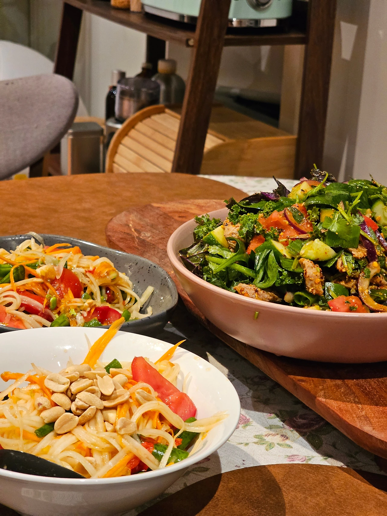 M은 나와 같은 30대지만 가끔 어른처럼 느껴지는데, 'Have you eaten?(뭐 좀 먹었어?)' 하고 물어볼 때가 그렇다. 한국에서 보통 어른들이 늘 밥 먹었냐고 물어보던 것처럼 그는 내 식사를 걱정해 준다. 가끔 퇴근길에 같이 먹자고 뭔가를 사 오기도 하고, 어느 날에는 위 사진처럼 태국음식을 해주기도 했다. 요리하기 전에 매운 걸 잘 먹냐고 물어봤었는데 언젠가 인터넷에서 '외국인들에게 매움의 기준은 고춧가루가 함유된 것이다'라는 내용을 본 기억이 나서 잘 먹는다고 대답했다. 그러나 저런 거짓 정보는 누가 퍼트린 거지? 서양인들은 그럴 수도 있으나 태국인에게는 해당 없다는 것이 저 정보와 함께 퍼졌으면 좋겠다. 정말 맛있었는데 상당히 매워서 연신 큰 숨을 내뱉으면서도 다 먹었다.
