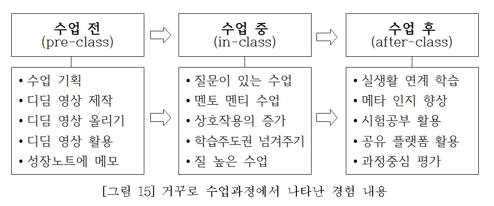 첫째, 거꾸로 수업과정에서 교사 경험은 어떠한가?