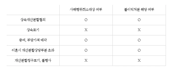 상속재산의 분할협의는 사해행위의 취소대상이 되지만, 상속의 포기는 취소대상이 되지 않아 불이익한 처분에 해당하지 않는다(대법원2011다29307).