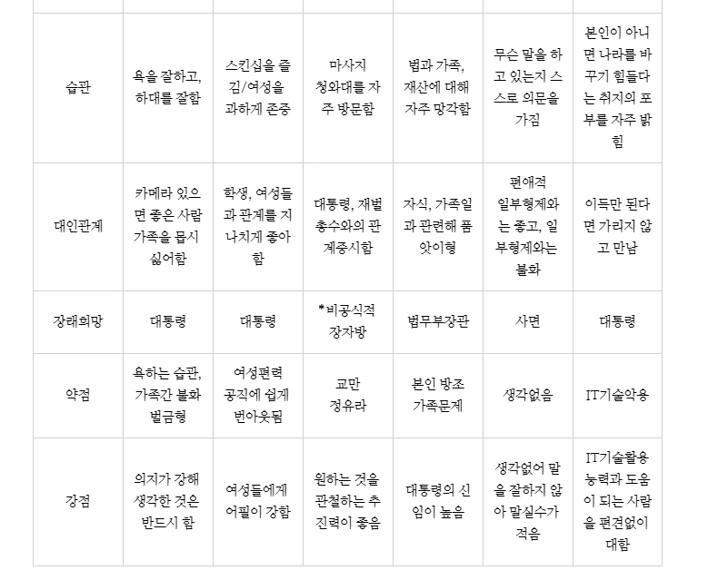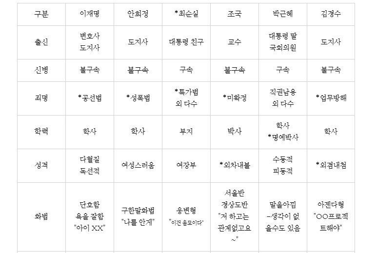 객관적으로 드러난 것들로만 정리해 보았다. 존칭, 직함을 써야 하나, 공통적으로 생략한다.