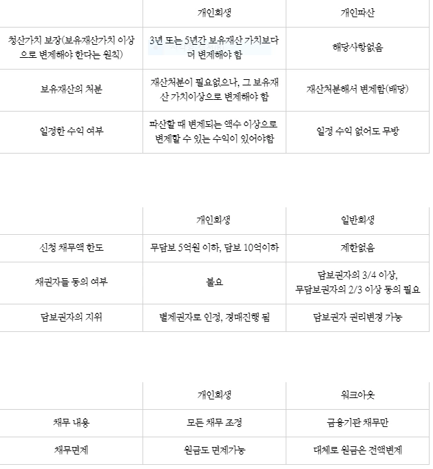 * 법개정으로 개인회생, 일반회생 기준채무액 담보채무 10억은 15억으로, 무담보채무 5억은 10억으로 개정