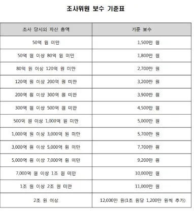 예납금의 대부분은 개시결정시에 선임되는 조사위원(회계법인)이 채권조사, 자산과 부채 조사, 부인권 해당여부 조사, 추정매출, 추정자금수지 등의 실사를 위한 비용에 충당된다. 자산총액을 기준으로 하여 조사위원 보수가 위와 같이 정해져 있는데, 통상 위 표 구간의 금액에서 적게는 500만원 ~ 많게는 1,000만원 정도 추가하면 되는데, 조사위원들이 제출하는 견적이나 신청사건의 규모 등에 따라 달라지기 때문에 상담시에 정확한 금액을 산정하기 어려우므로 최대한 넉넉하게 준비하는 것이 바람직하다.