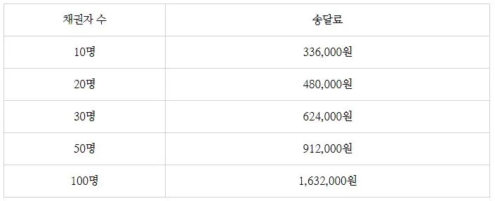 송달료를 사안이 발생할 때마다 납부하도록 하면 번잡하기 때문에 미리 채권자 등의 수에 따라 사전에 납부해야 한다. 법원이 채권자 수에 따라 산정해서 납부하도록 안내하기 때문에 여기서는 개략적으로 기재하기로 한다.