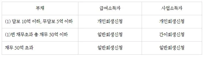 3. 사업소득자 : 담보채무 10억 초과 또는 무담보채무 5억 초과이면서 총 부채 50억이하