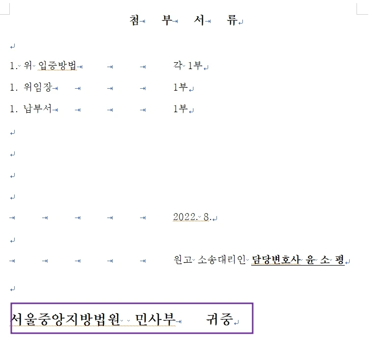 그리고, 원고는 증거자료를 "갑제O호증"으로 순번을 매겨 정리하고 이를 소장 말미에 첨부해야 한다.