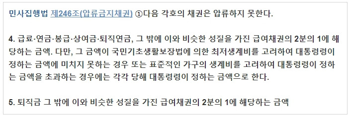 급여 150만원 이하 : 전액 가압류(압류)금지