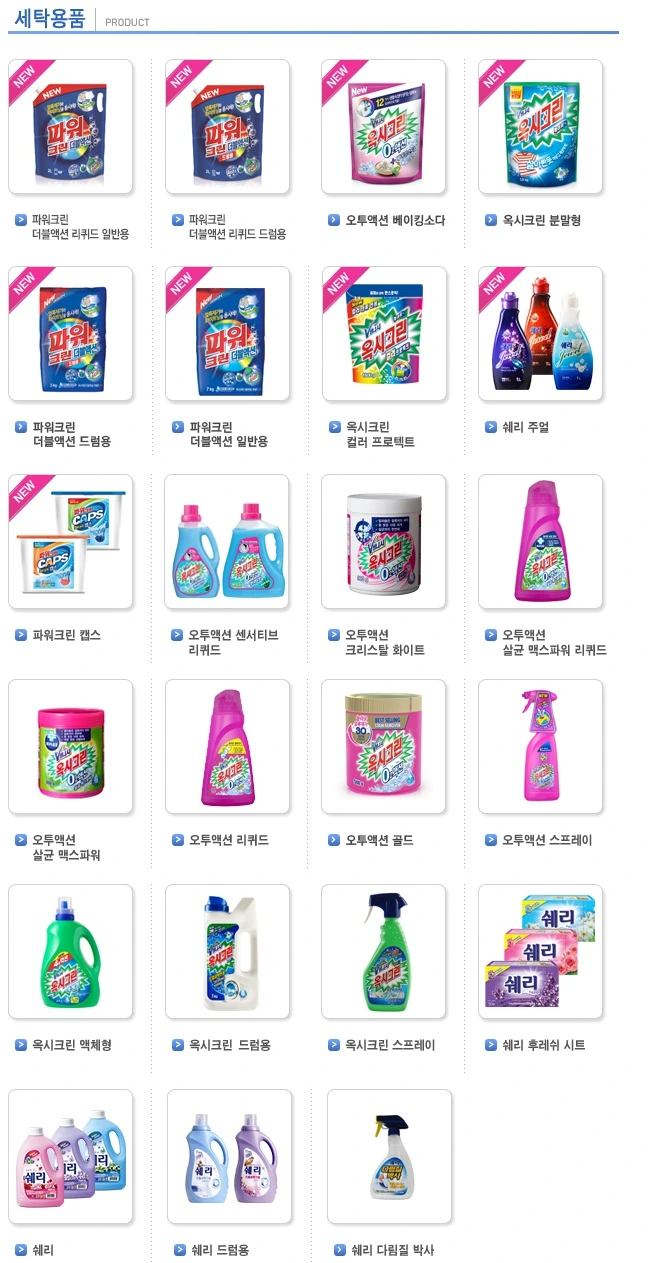옥시크린, 파워크린, 오투액션, 더블액션, 쉐리