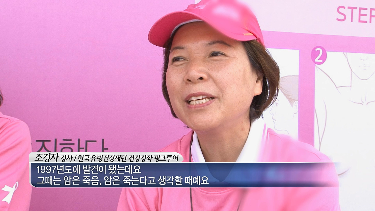 1997년도에 발견이 됐는데요. 그때는 암, 그러면 곧 죽음, 암은 죽는다고 생각했던 때예요. 굉장히 무섭고 두렵고, 그런데 막상 수술하고 보니까요. 유방암은 조기에 발견하면 굉장히 예후가 좋고 생존하는 데 전혀 지장이 없어요. 이런 것을 내가 너무 막막하고 답답했던 그런 것을 진단을 받은 분들한테 알려주고 싶고 또 그렇지 않은 사람들한테도 우리 여성들은 누구라도 걸릴 수 있다는 걸 알려줘서 미리 예방을 하고 그리고 두렵지 않다는 것을 알려줘서 ‘혹여나 발병이 되더라도 저처럼 두렵고 떨지 않았으면 좋겠다’ 이런 마음에서 시작하게 됐습니다.