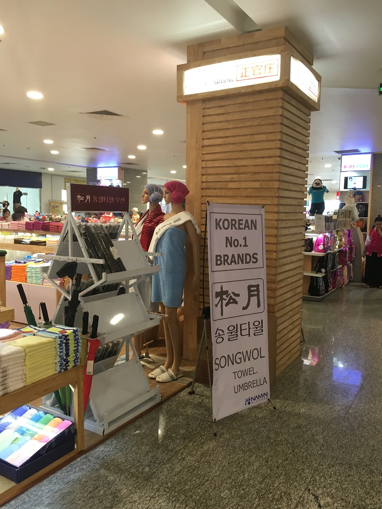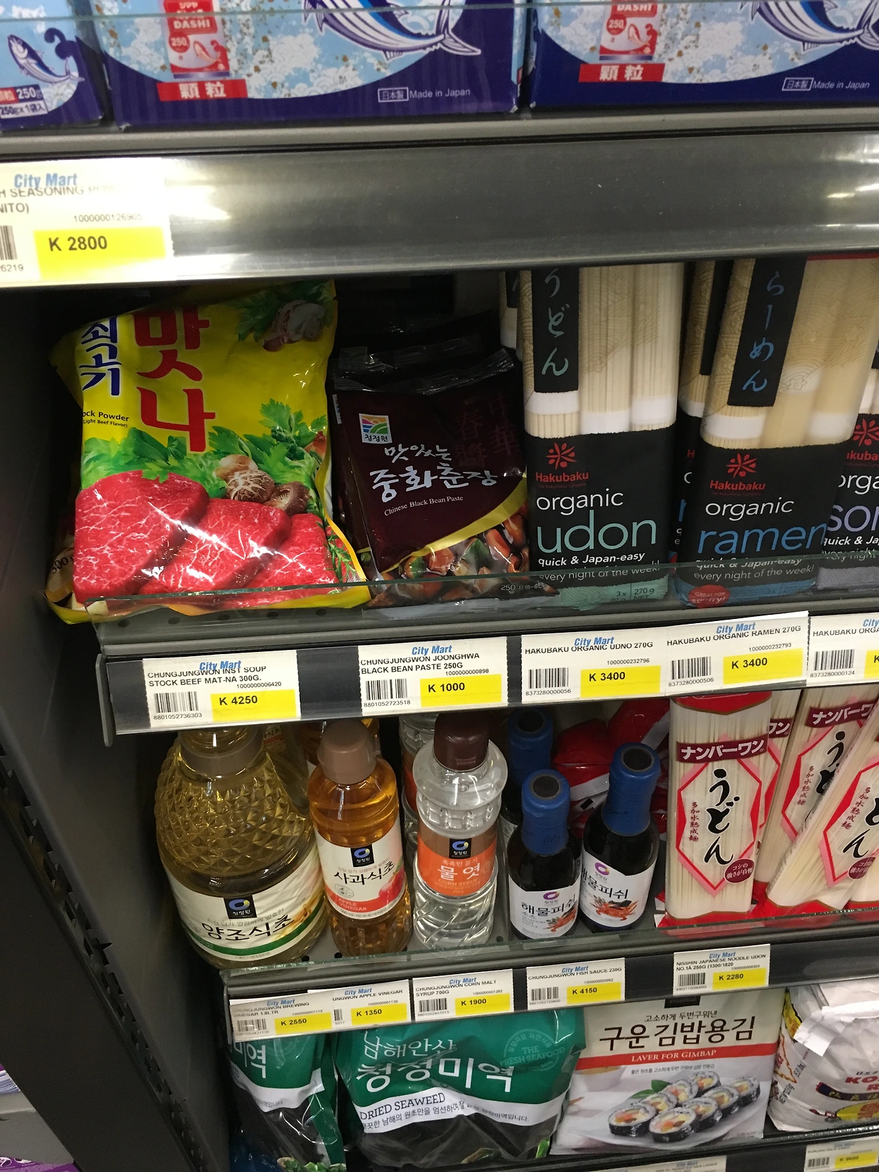 삼성, LG야 어느 국가에나 다 있다지만, 유독 정말 의외의 상품들이 미얀마에 진출해있는 것을 보면 가끔 흠칫하곤 한다. 한인마트가 아닌 일반 마트에서도 다시다, 김, 라면 등은 흔히 볼 수 있고 송월타월같이 정말 의외의 미얀마진출 브랜드도 있다. 그리고 여기도 더페이스샵, 네이처리퍼블릭, 토니모리, 에뛰드, 홀리카홀리카 등 웬만한 로드샵 브랜드는 다 있으나 가격이 한국과 똑같다. 의류는 지오다노만 본 것 같다.