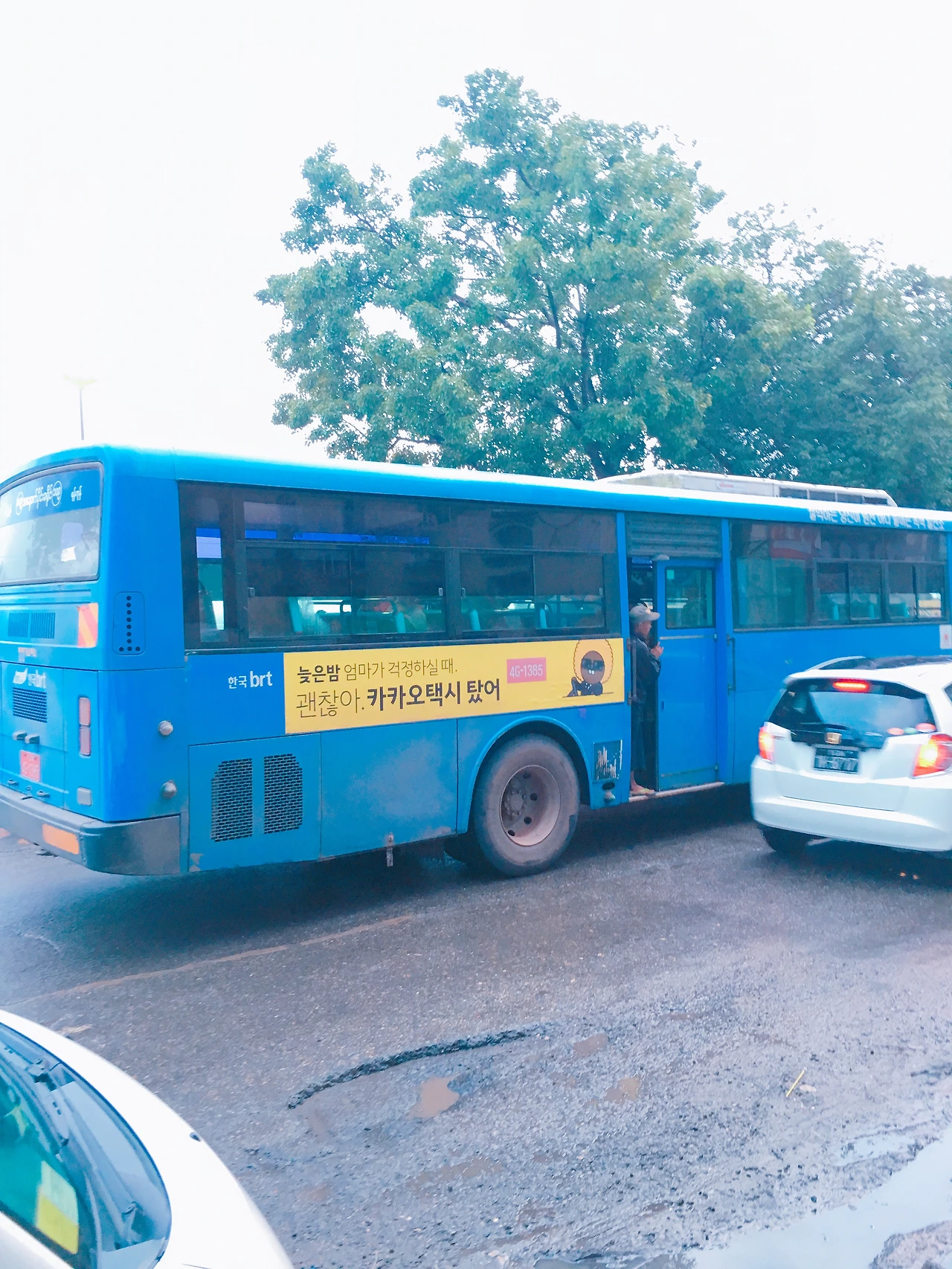 가끔 1시 언저리에 은행을 가보면, 아침드라마 류의 한국드라마를 방영하는 것을 쉽게 볼 수 있다. 한국어가 그대로 나오고 그 위에 미얀마어 자막이 덧대어있는데, 그 때문인지는 몰라도 약간 한국을 Fancy하게 여긴다는 느낌을 아주 살짝씩 받는다. 유가네가 진출한건 뭐 그럴수 있을 것 같은데 굳이 Korean을 붙인다던가, 한국 버스를 수입할 수는 있지만 저런 광고판 같은 걸 그대로 붙인 채 다닌다던가 하는 것들.