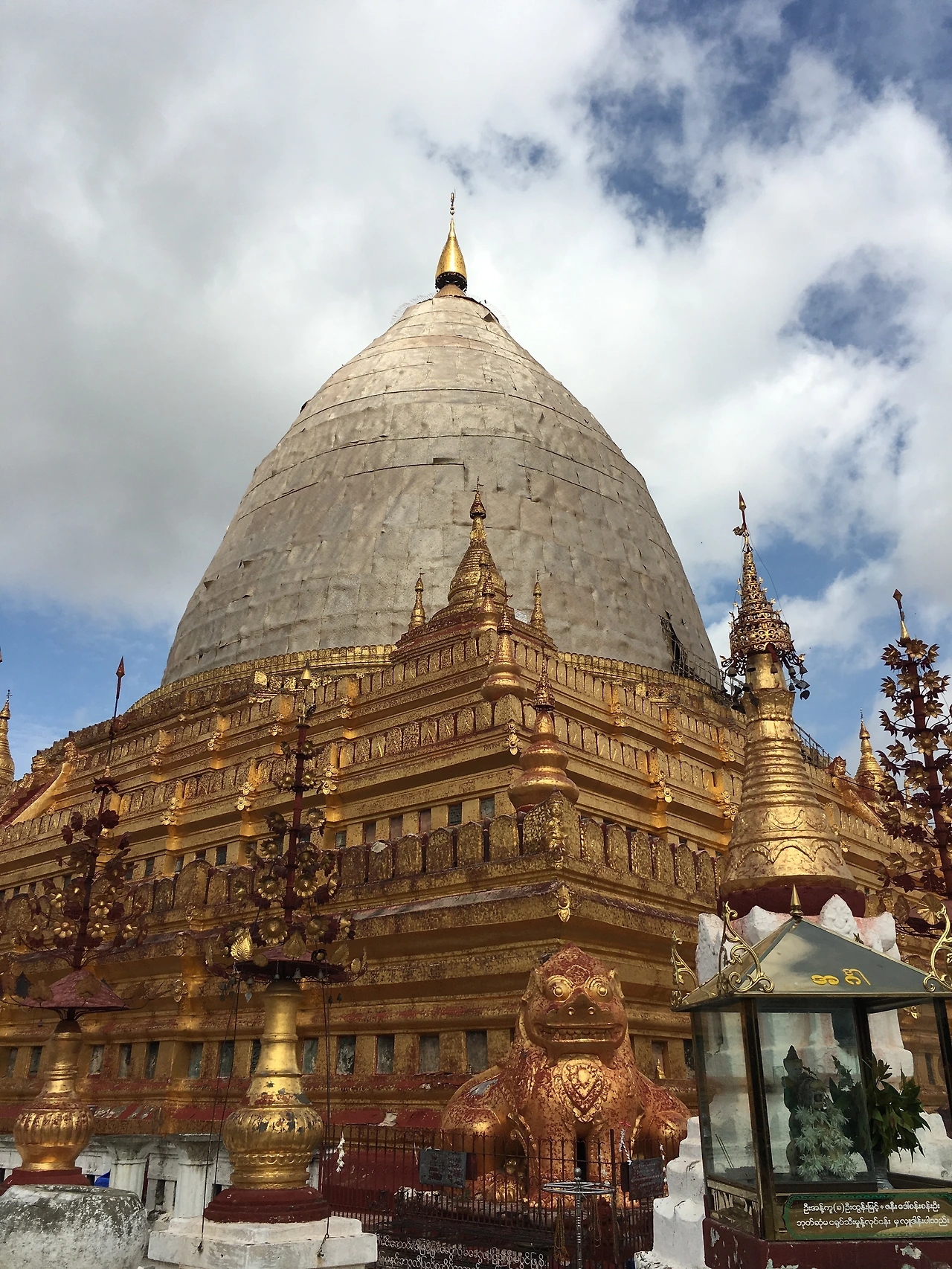 덜덜거리는 야간 버스를 타고 새벽 6시에 도착한 직후부터 5시간 동안 E-bike를 타고 다닌 탓에 안 그래도 몸이 힘든데 정신적인 피로감마저 더해지자, 점심을 먹기 전 마지막으로 도착한 쉐지공 파고다에서는 거의 넋이 나가 있었다. 이제는 나에게 영어를 쓰며 다가오는 모든 사람들이 돈을 요구하는 사람으로 보였다. 사진도 거의 찍지 않은 채 쉐지공 파고다를 돌고 점심 먹을 레스토랑을 찾고 있는데 어떤 현지인이 여기 물 고여있는 것을 보라며 다가왔다. 아무 말 안 하고 한숨을 푹 쉬었더니 그 사람이 자존심이 상했는지 노머니 노머니 이러더라. 정말 호의로 이 물이 무엇을 의미하는지를 알려주려 한 걸 수도 있는데 괜스레 미안해졌다.