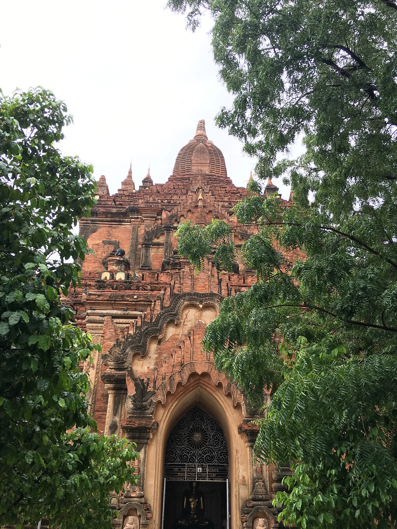 이 곳은 아난다 파고다를 가기 위해 길을 헤매다 도착한 곳이었다. 거대한 사원의 모습에 이끌려 자연스레 발을 디뎠고, 사원 안에는 합장하며 불상에 기도하는 현지인들이 꽉 차있었다. 왠지 방해하면 안 될 것 같아 사원 주위를 돌고 있었는데 모녀로 보이는 두 사람이 접근하여 틸로민로 파고다의 전경을 보여주겠다 제안을 했다. 그 때만 해도 바간에 도착한 지 얼마 안 되었기 때문에 ‘이것이 미얀마 사람들의 친절인가?’하며 승낙하고 그들을 따라갔다. 그들은 영어를 꽤 했다. 썩 괜찮은 대화들이 오갔고 낮은 사원의 위에서 바라보는 뷰도 나쁘지 않았다.