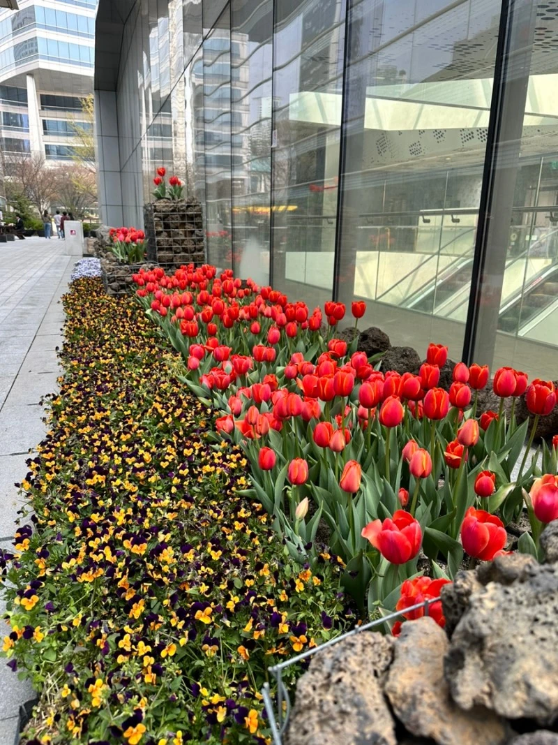* 삼성동 코엑스에 아름다운 꽃으로 장식한 화단이 설치되었습니다. 산책을 하다가 그냥 지나칠 수 없었습니다. 튤립이 매우 아름답습니다.