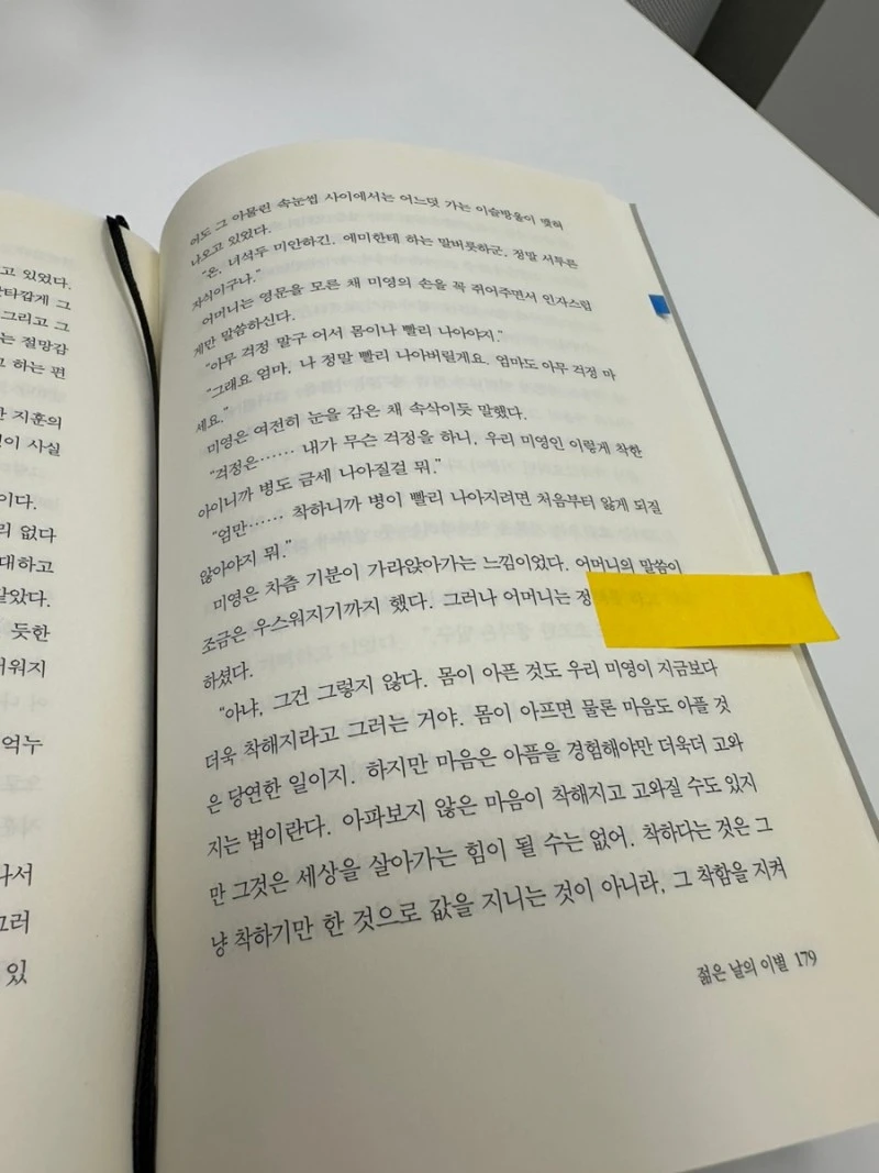 이청준의 <젊은 날의 이별>에서 폐렴으로 입원한 딸 미영에게 그녀의 어머니가 하는 위로의 말이다. 어째서 마음은 아픔을 경험해야지만 더 아름다워지는 걸까. 인간의 마음은 원래 부패해서 가만히 놔두면 온갖 더러운 것들로 가득 채워지기 때문일까. 시기, 원망, 불만, 미움 등등.