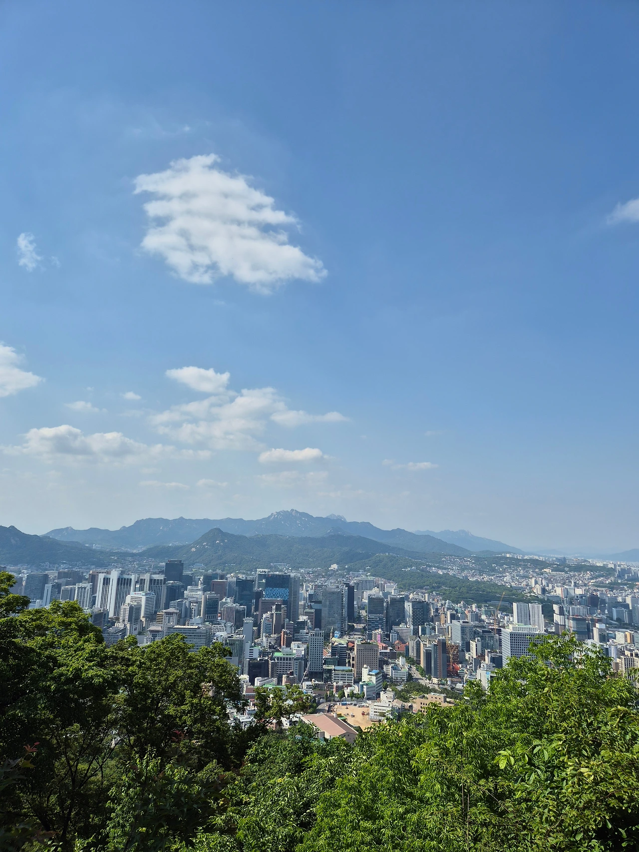 토요일, 오랜만에 찾은 남산. 한낮의 햇빛은 뜨거웠지만 미세먼지가 많지 않아 하늘은 투명했다. 알고 있던 길로 올라가다가 앞선 사람들이 다른 길로 가길래 따라갔더니 남산서울타워까지 바로 올라가는 직진 코스였다.