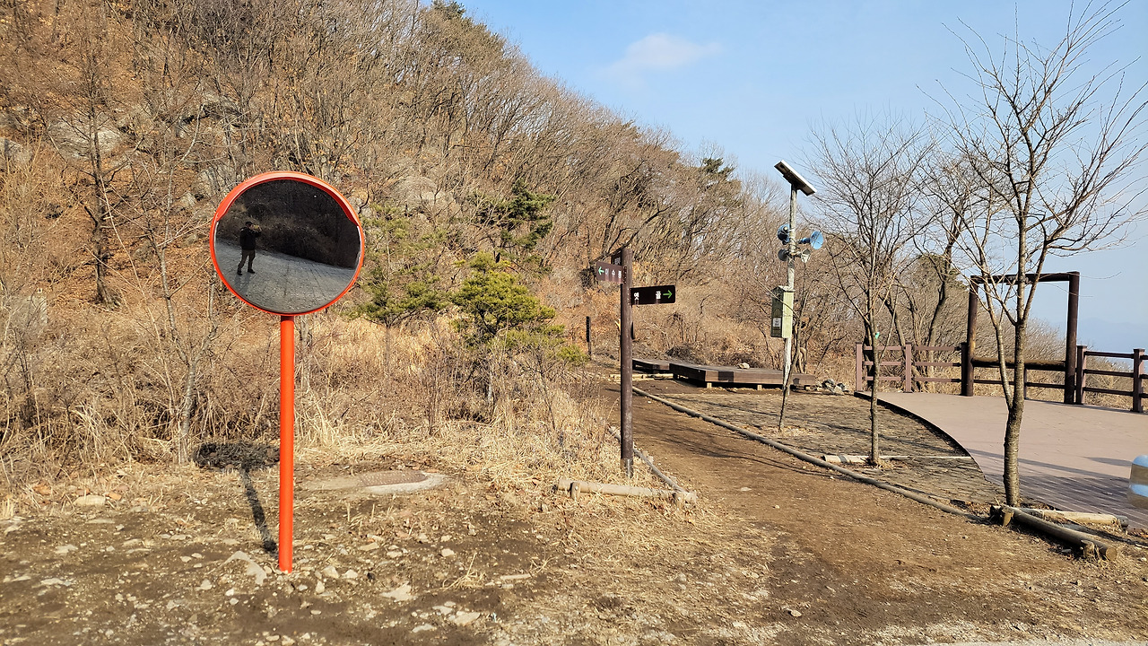 청계산 등산로에 볼록거울이 있어요.