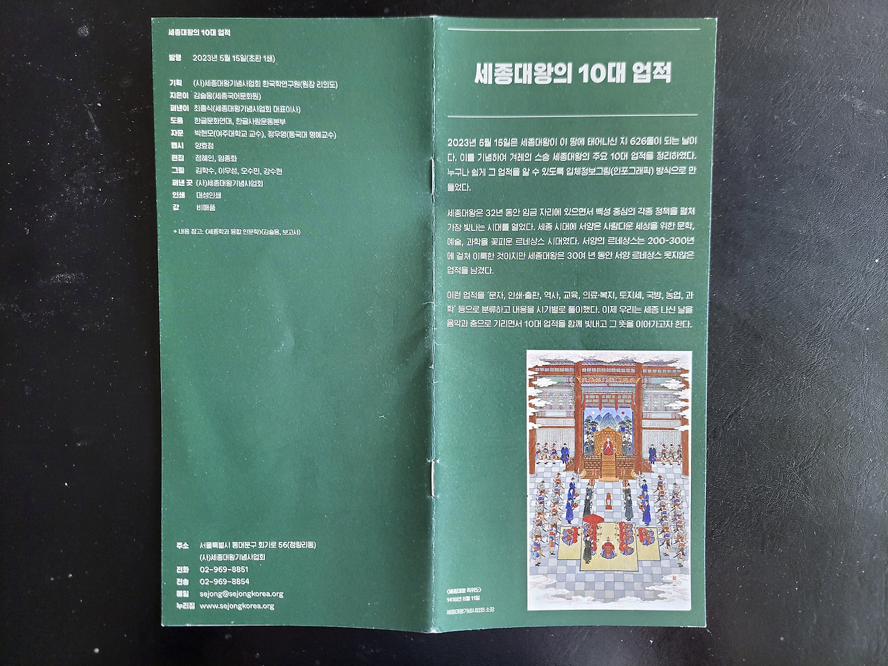 아래는 『세종대왕의 10대 업적』이라는 팜플렛 중 일부다.
