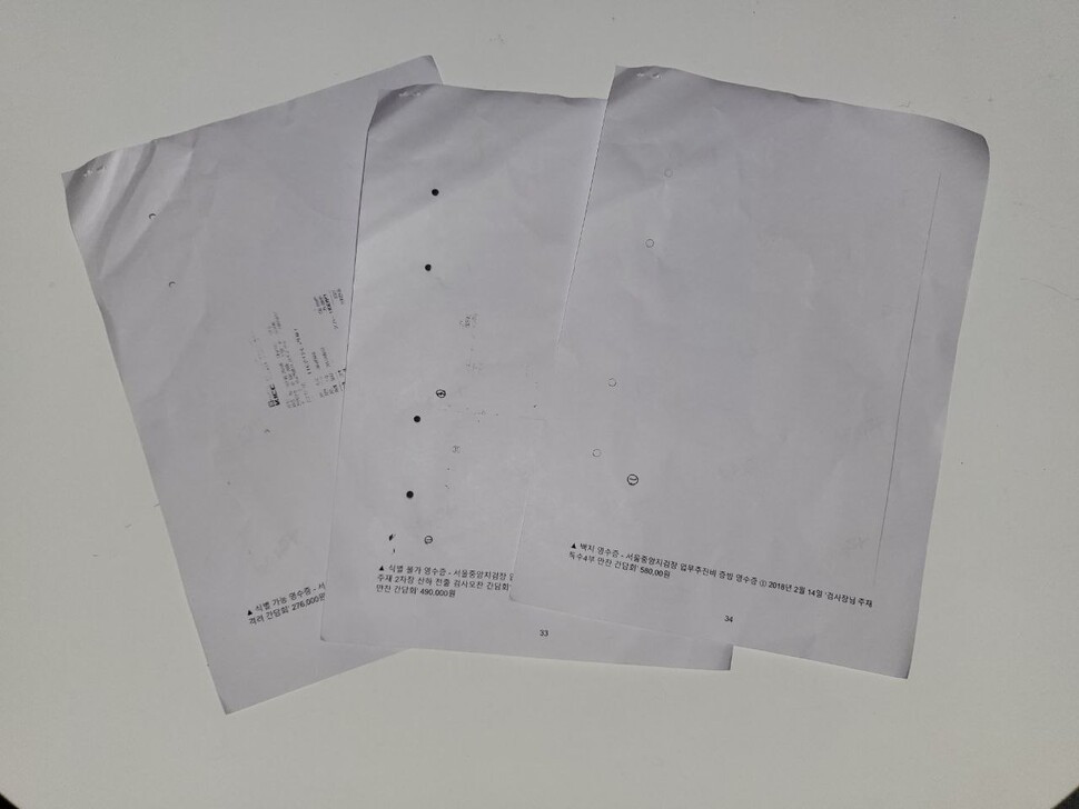 상호명 등이 삭제된 채 공개된 영수증들조차 복사 상태가 나빠 대부분 식별이 불가능했다. 등은 “전체 535건의 영수증 중 61%가 판독 불가능한 상태다. 나머지 39%가량도 겨우겨우 식별이 가능한 수준”이라고 설명했다. 검찰은 ‘오래전 영수증이라 원본 자체가 이미 잉크가 휘발돼 희미한 상태’라고 설명했다.