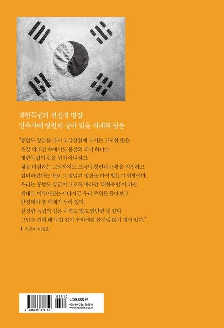 나는 젊은 시절 40개월 해병대 장교로 전방에서 복무했는데, 책에 쓰여진 홍범도 장군의 전술과 병법은 장교들이 배울 만하며, 최근 ‘초한전(超限戰)’이라고 정규전이 아니라 심리전, 공작전, 정보통신ICT전을 비롯한 무제한 전쟁이 펼쳐지는 시대에 홍범도 장군의 전법(戰法)은 사관생도라면 익혀야 할 필수가 아닐까요.