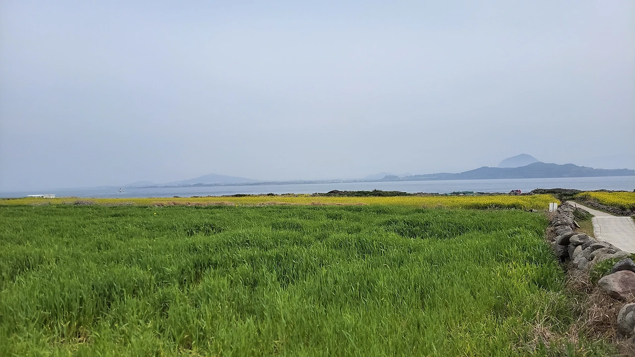 산방산이 보이는데, 아이들은 큰 섬에서 학교 직장 다니고 노친네들만 섬을 지키고