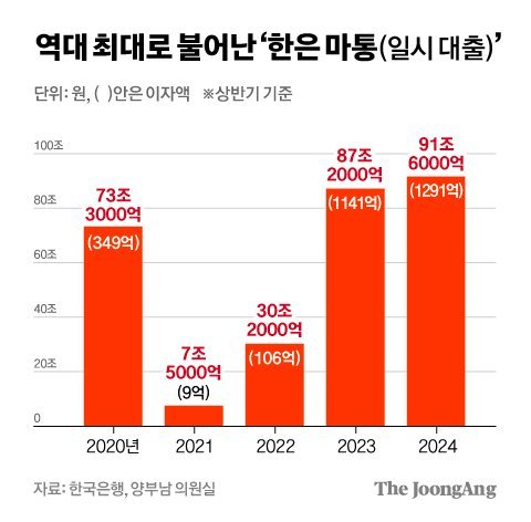 ‘빚 1039조’정부 급전 …‘한은 마통’92조 끌어썼다 (중앙일보 7월8일, 정진호 기자)