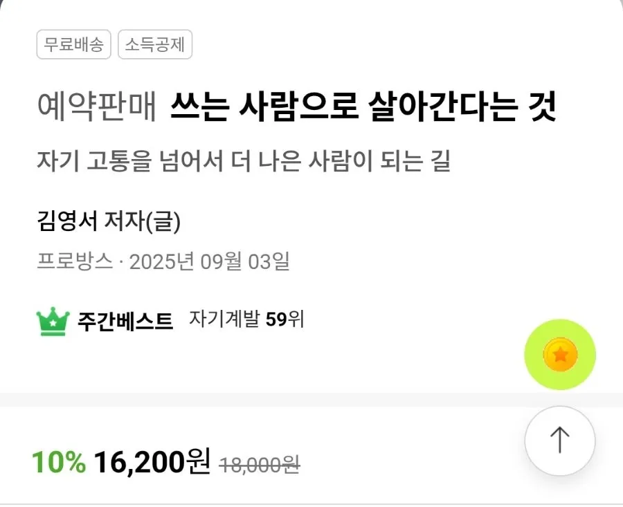 오늘 기준으로 제 책이 교보문고 주간 베스트 자기 계발 59위에 있다고 출판사 대표님이 전화를 주셨어요.