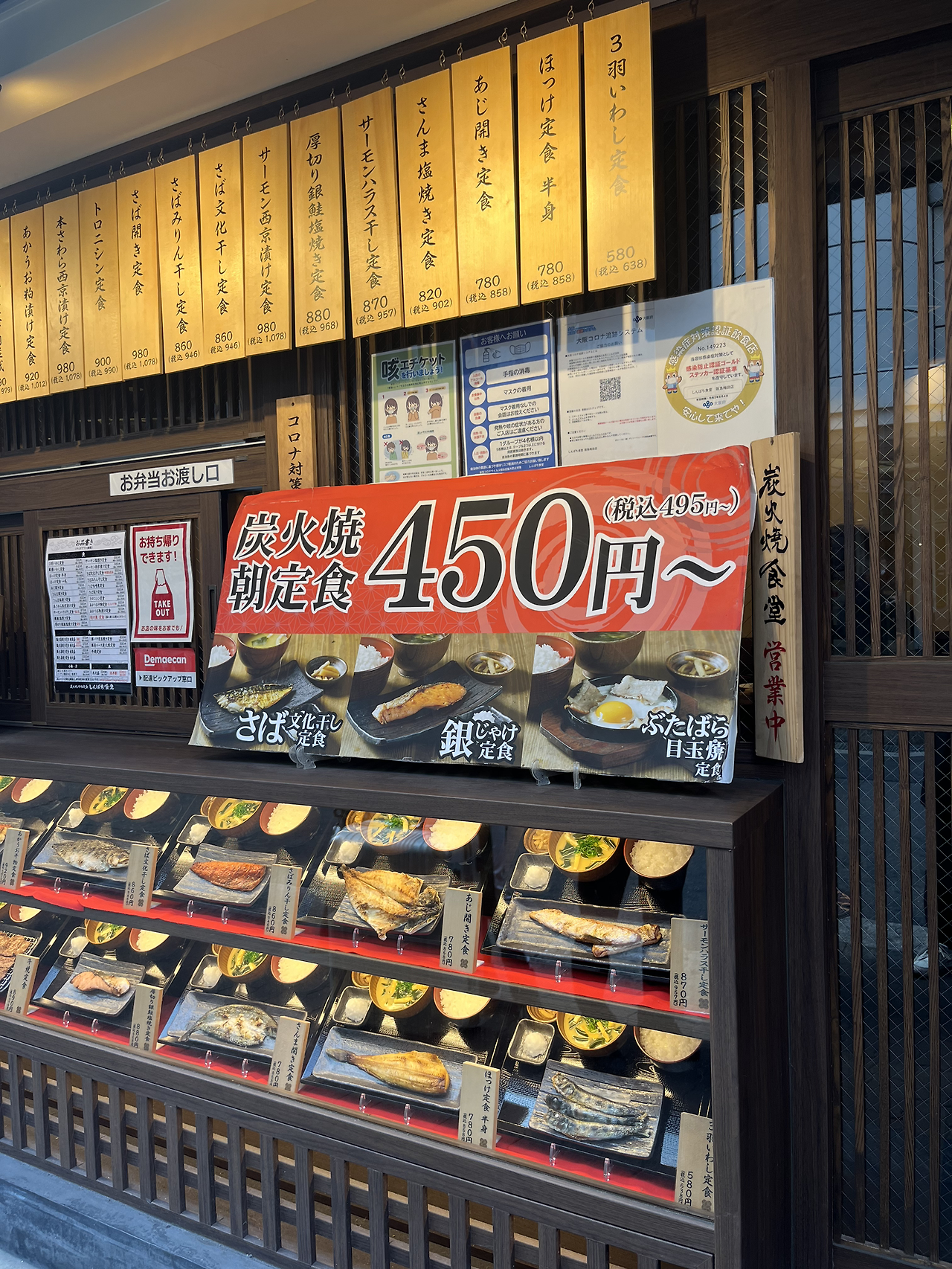 먼저 우리 숙소에서 5분 거리 정도에 있던 신파치 식당이다. 우메다 말고 교토 여행 중에도 본 것으로 짐작해 보면 일본 내 여러 지점이 있는 식당인 듯하다. 2023년 1월 1일 일본에 도착해서 뭘 먹을까 고민하던 중 현지 사람들과 외국인들이 줄 서 있는 것을 보고 여긴 실패하지 않겠다 싶어 들어갔다. 일본 가정식을 판매하는 곳인데 패드로 주문하는 방식이라 주문이 전혀 어렵지 않았다. 심지어 매장에서 어떤 메뉴가 인기 메뉴인지 패드에 나와 있어 그대로 주문했다. 고등어정식과 사진에 보이지 않는 연어뱃살구이 정식을 먹었는데 고등어정식이 개인적으로 더 맛있었다. 맛은 무난하게 맛있다. 후에 인터넷으로 찾아보니 아침 식사가 가격이 저렴하게 제공되어 아침 식사가 유명한 듯했다.