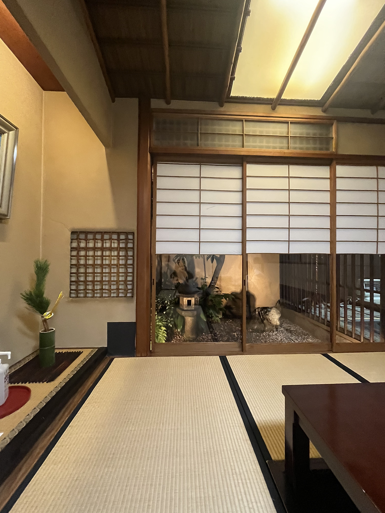 유튜브 조회수 16만에 달하는 ‘이상적인 스키야키’라는 동영상을 인상 깊게 본 기억이 있다. 처음 이 영상이 보면 말하고 싶은 내용이 뭐지?라는 생각이 드는데 의미를 곱씹을수록 감탄사가 나오는 영상이다. 덕분에 스키야키라는 음식에 이상한 호기심이 생겨버렸다. 그런데 이 스키야키라는 음식을 제대로 먹으려면 꽤 가격이 나간다는 것을 이번 여행을 통해 알게 되었다. 맛집이라고 올라온 곳 대부분의 스키야키가 10만 원 정도를 웃돌기 때문이다. 우리도 1인당 7만 원 정도 하는 금액을 들여 스키야키를 먹기로 했다. 7만 원 정도 하는 가격대라 그런지 프라이빗한 룸으로 안내해 주시고 전채요리를 시작으로 후식까지 나오는 코스요리였다. 실내 정원도 있어 밥 먹으면서 구경하는 재미가 있었다. 그리고 맛있었다. 특히 고기의 품질이 좋구나 하는 생각이 들었는데 나에게는 간이 너무 센 게 조금 아쉬웠다. 후에 우리나라의 김밥 천국 같은 가게의 스키야끼도 먹어봤는데 확실히 맛에 큰 차이가 있음을 느꼈다. 리뷰를 찾아보면 해당 가게의 스키야키를 인생 스키야키라고 손꼽는 사람의 글도 보았다.