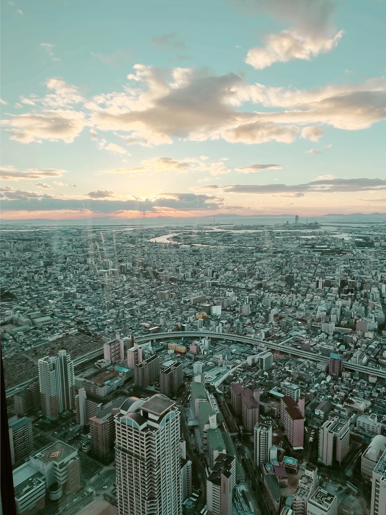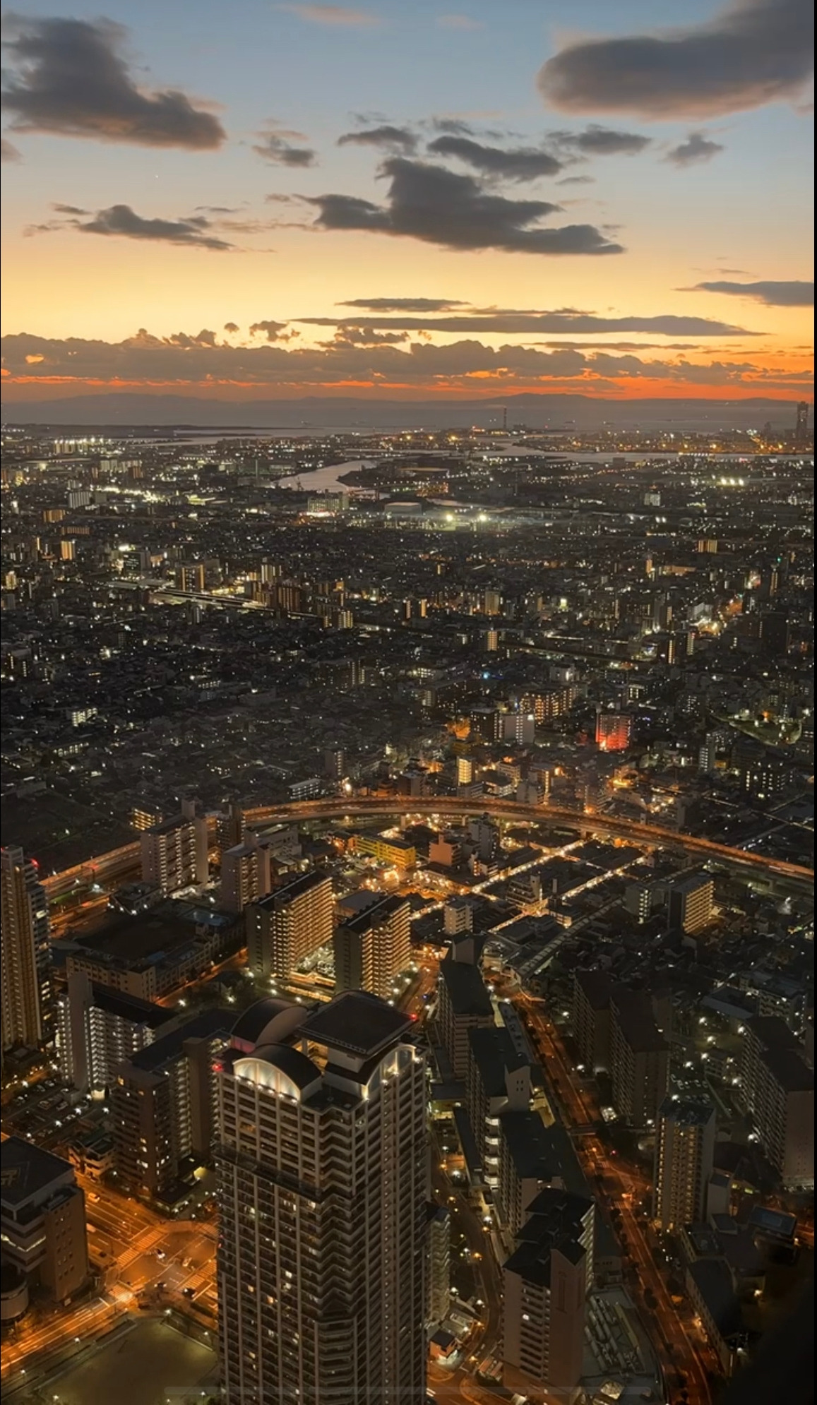 하루카스 300은 우리나라 롯데 타워에 있는 서울 스카이와 굉장히 비슷하다. 그래서 가는 내내 큰 기대는 없었다. 그럼에도 내가 하루카츠 300을 가는 내내 한 가지 설렘을 가지고 가는 것은 바로 일몰을 보고 싶었기 때문이다. 일몰 시간을 확인하고 30분 전쯤 하루카스 300 전망대 위로 올라갔다. 짝꿍과 함께 전망대에서 우리가 간 오사카성이 여기 있고, 저기쯤에는 아마 이런 게 있겠지?라는 이야기를 나눌 때쯤 해가 뉘역뉘역 저물기 시작했다. 하늘이 하늘색에서 분홍, 빨강, 남색, 검정이 뒤섞여 이윽고 땅에 총총 박힌 별들이 하루카스 300의 창문을 밝혀주었다.