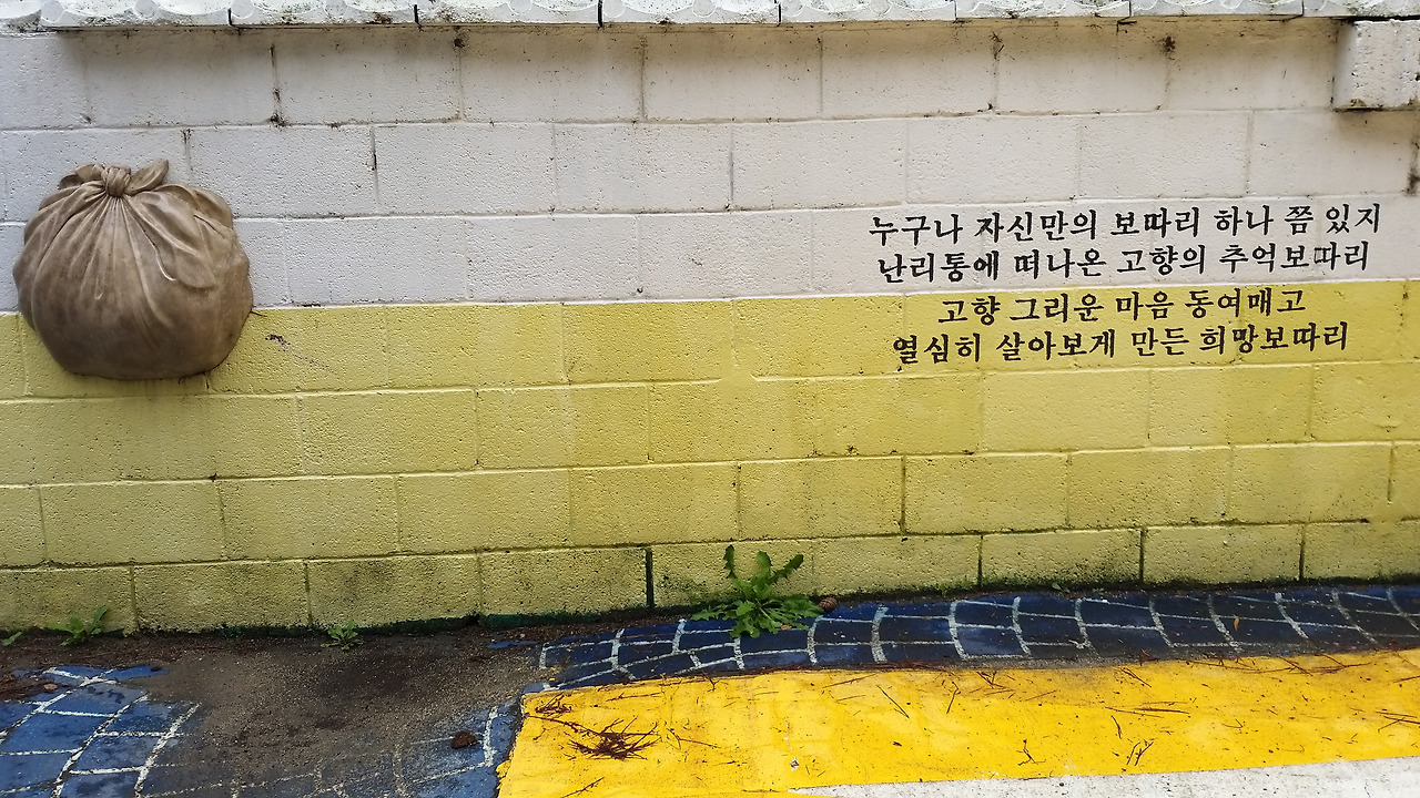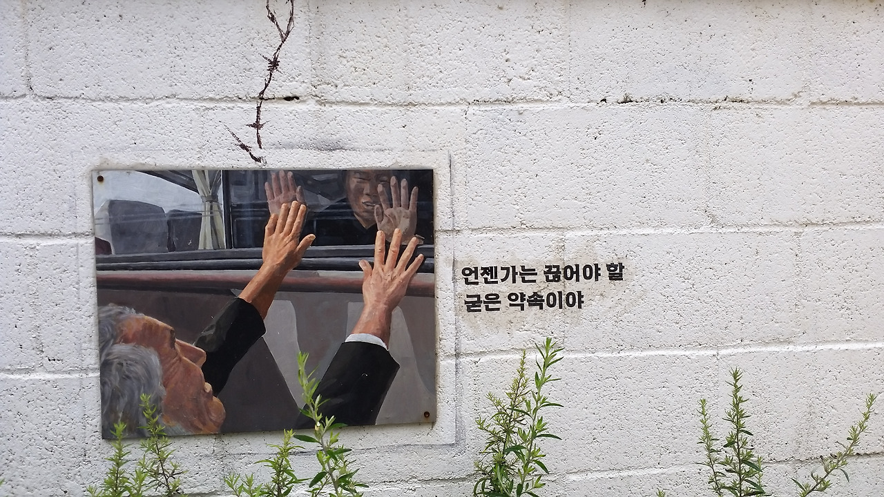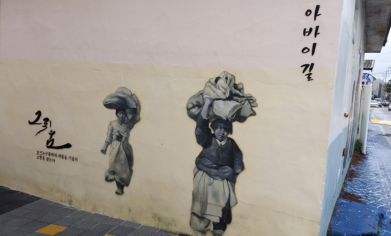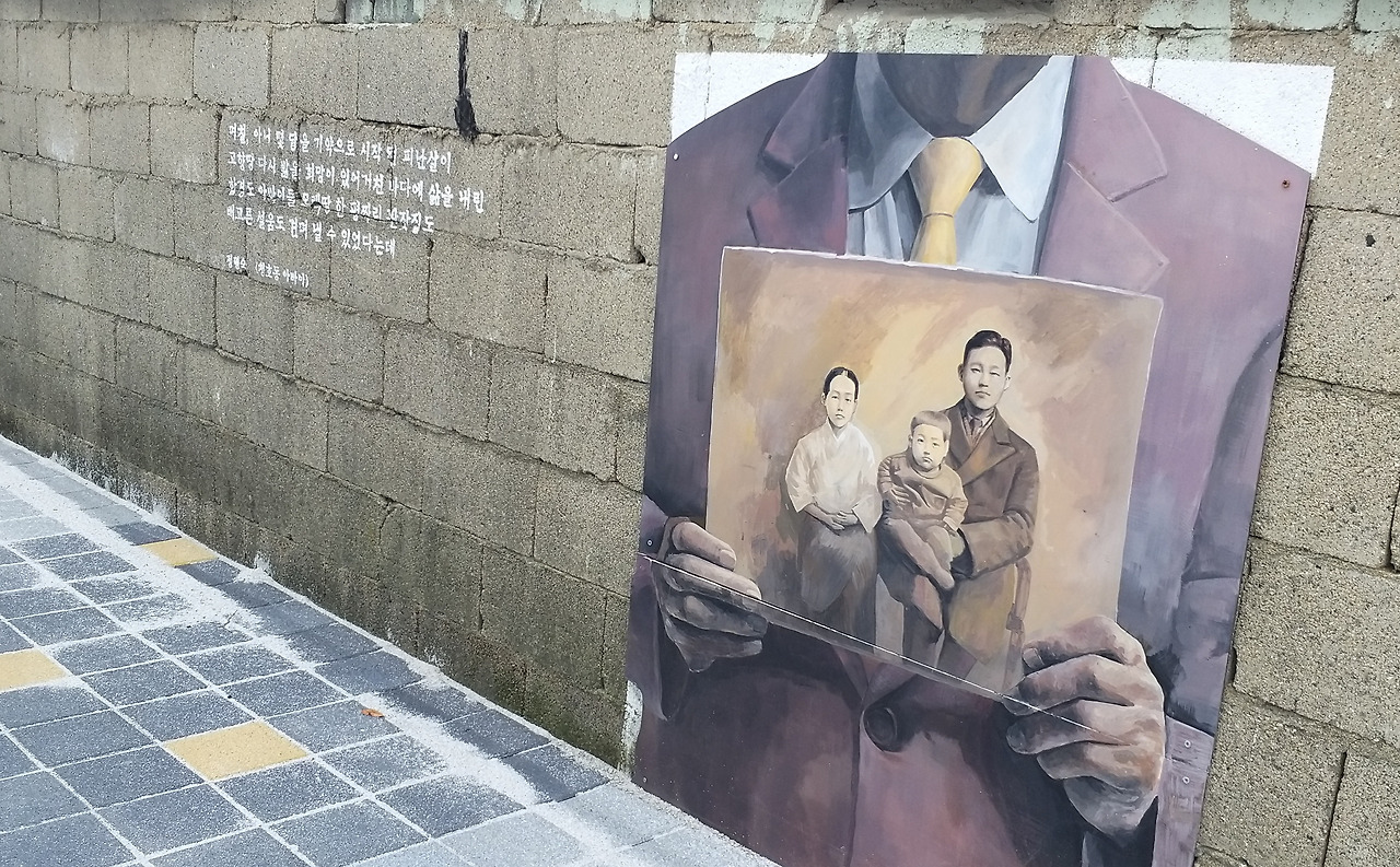 아바이 골목 벽화에는 이들의 애닮은 마음이 녹아 있다. 한 구절, 그림 한 폭이 세련되지는 못했을망정 결코 허투러지게 느껴지지 않는다. 간절함으로 다가오고 서러움으로 와닿는다.