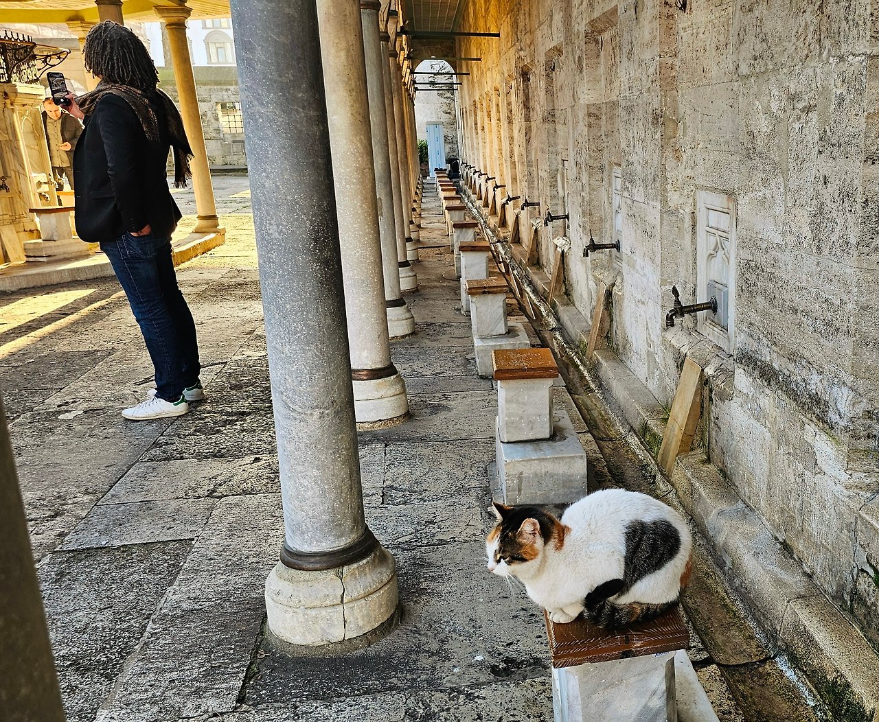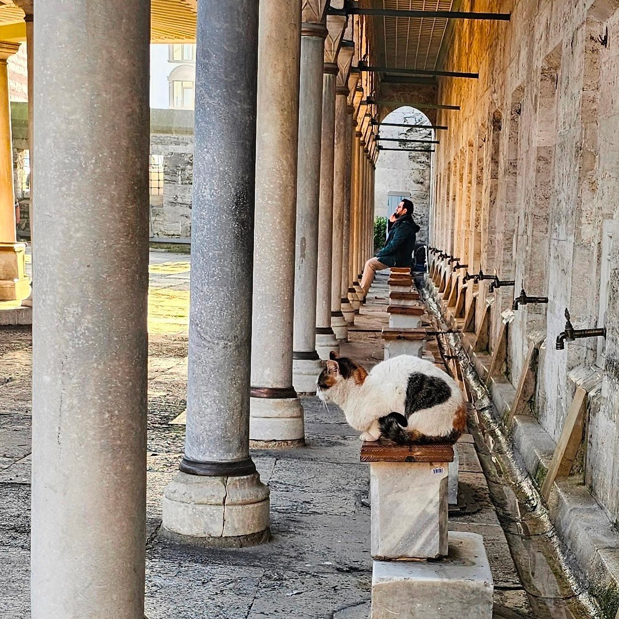 모스크에 가면 고양이들이 불쑥 불쑥 얼굴을 내 비췬다. 명색이 모스크를 지키는 든든한 지킴이로 여겨주길 바라는 걸까. 요란스러움이 없어도 고양이가 해당 장소에 뚝 버티고 있는 것 자체가 지킴이 되고 경계가 된다.