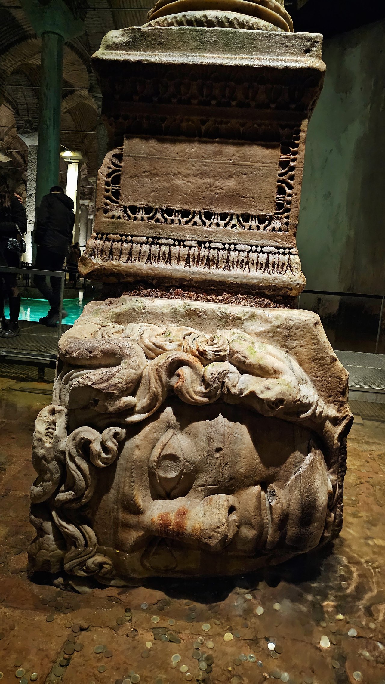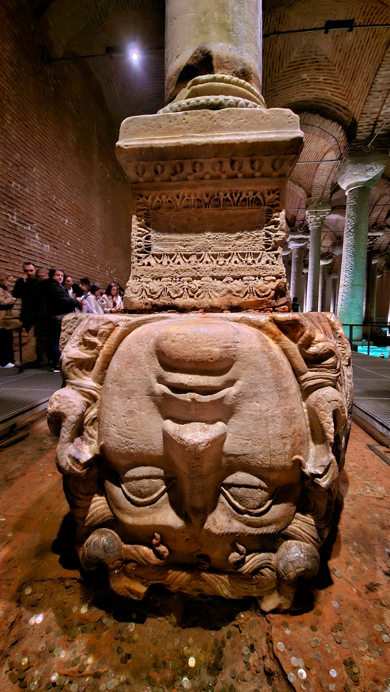 왜 메두사의 형상이 여기에서 주춧돌로 자리잡고 있을까. 여기에는 깊은 종교적인 의미가 깃들어 있을까. 아니면 단순히 다른 건축물에 있던 주춧돌을 빼 와서 여기에 사용한 것 뿐일까.