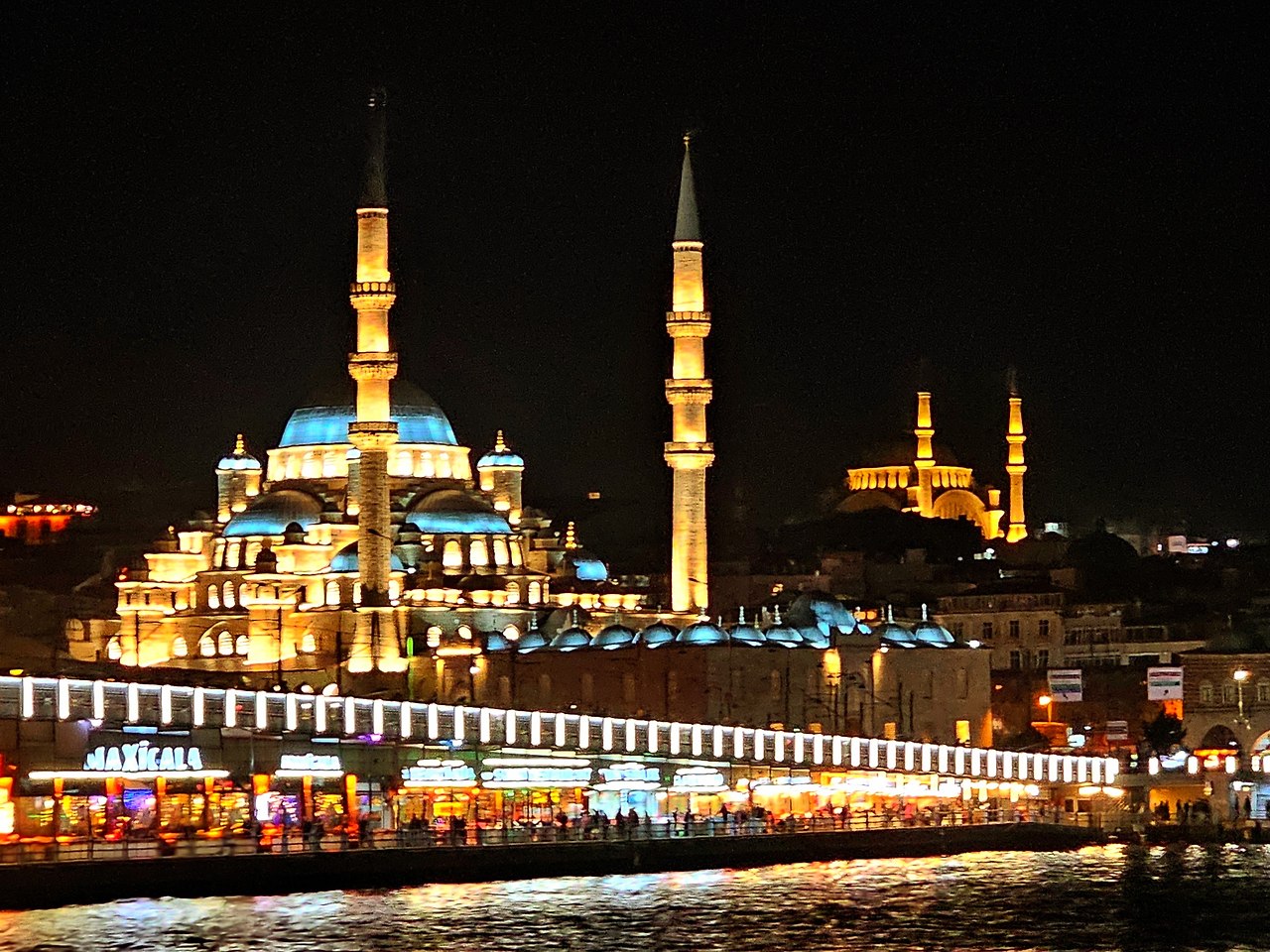 낮에 보았던 도시의 전경은 밤이 되면 확 달라진다. 인공적인 조명과 불빛으로 직조된 풍광은 자연광에서 보이는 풍경과는 이질적이고 특별하다. 특히 야광에 의존해 장엄한 자태를 확연히 드러내는 모스크의 당당한 위용 앞에서는 숨은 멎고 가슴은 떨린다. 경건함이 감돌고 경외심이 돋는다.
