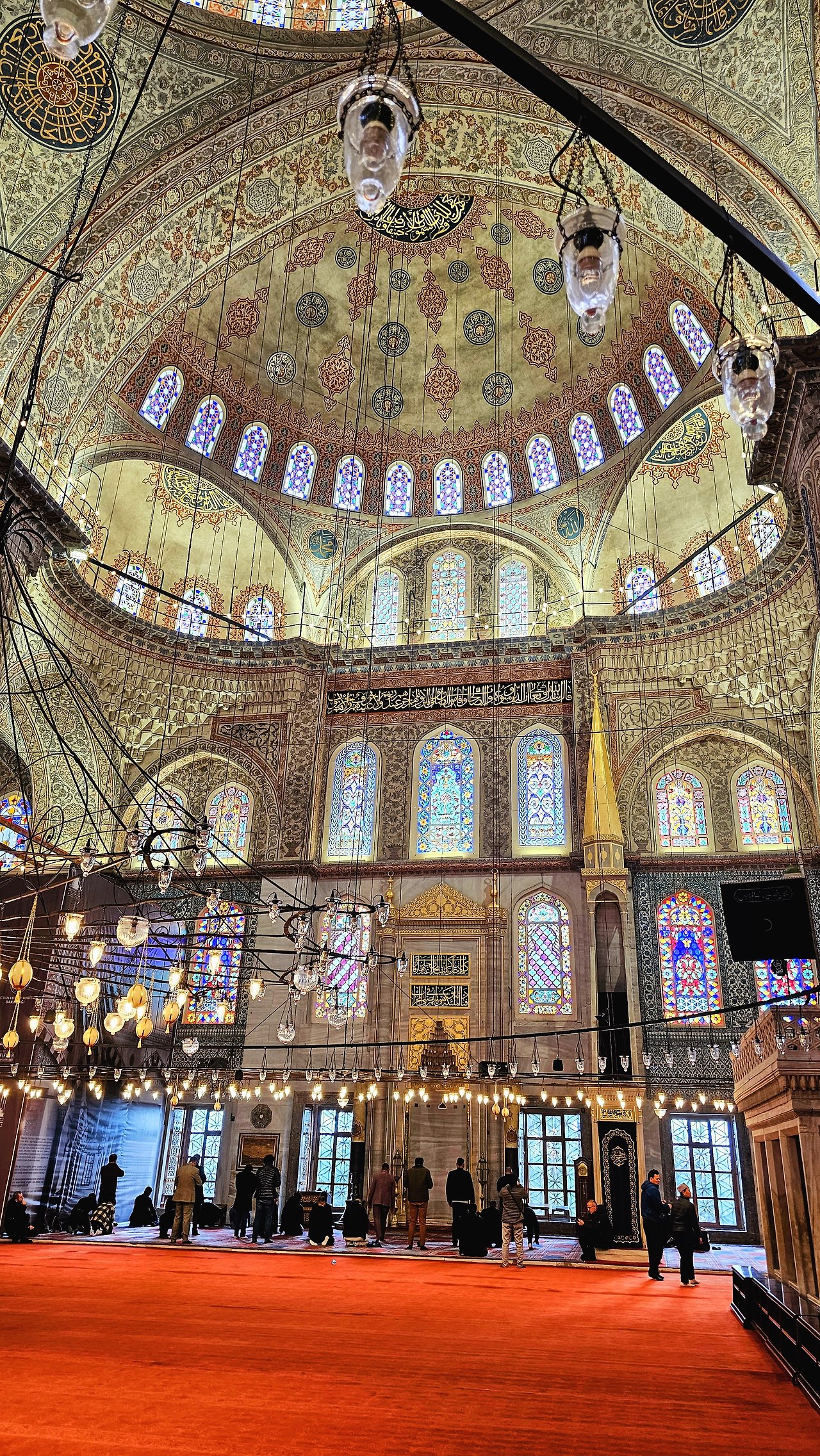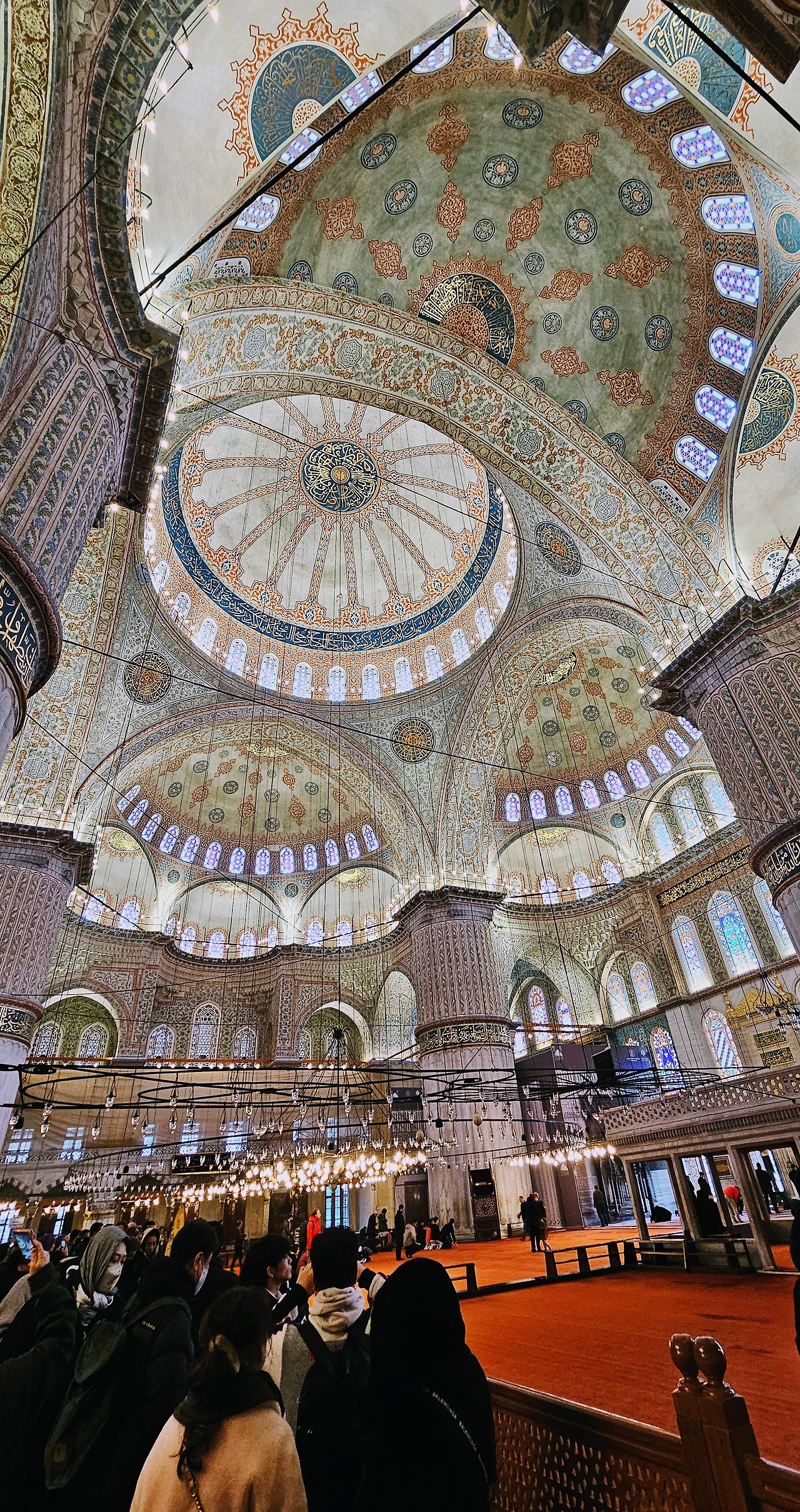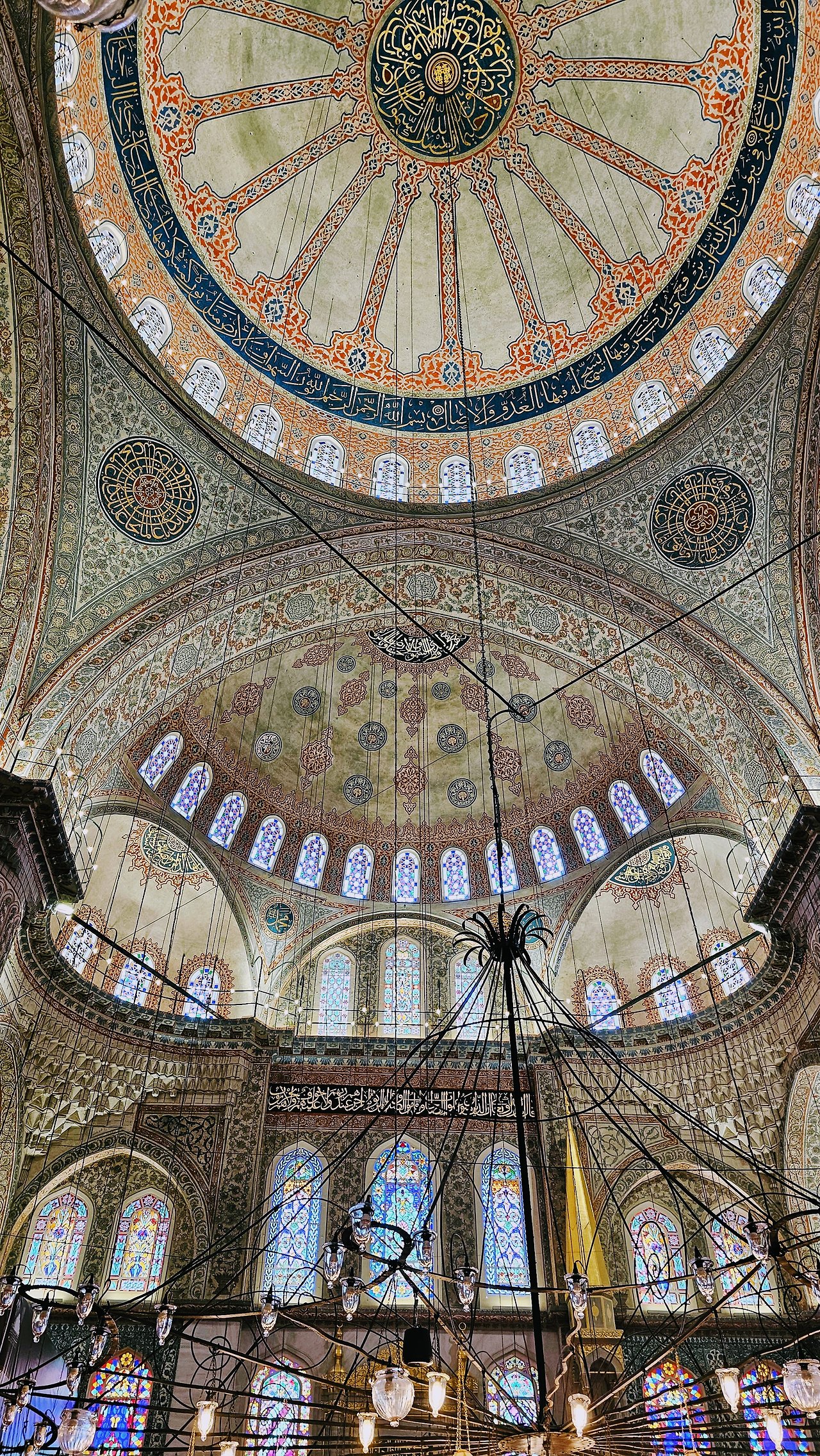 블루모스크 감상에서 건물 중앙 돔 풍경을 빠뜨릴 수 없다. 모스크 내부 중앙 홀 천정을 올라다 보면 웅장한 전경에 압도당한다.
