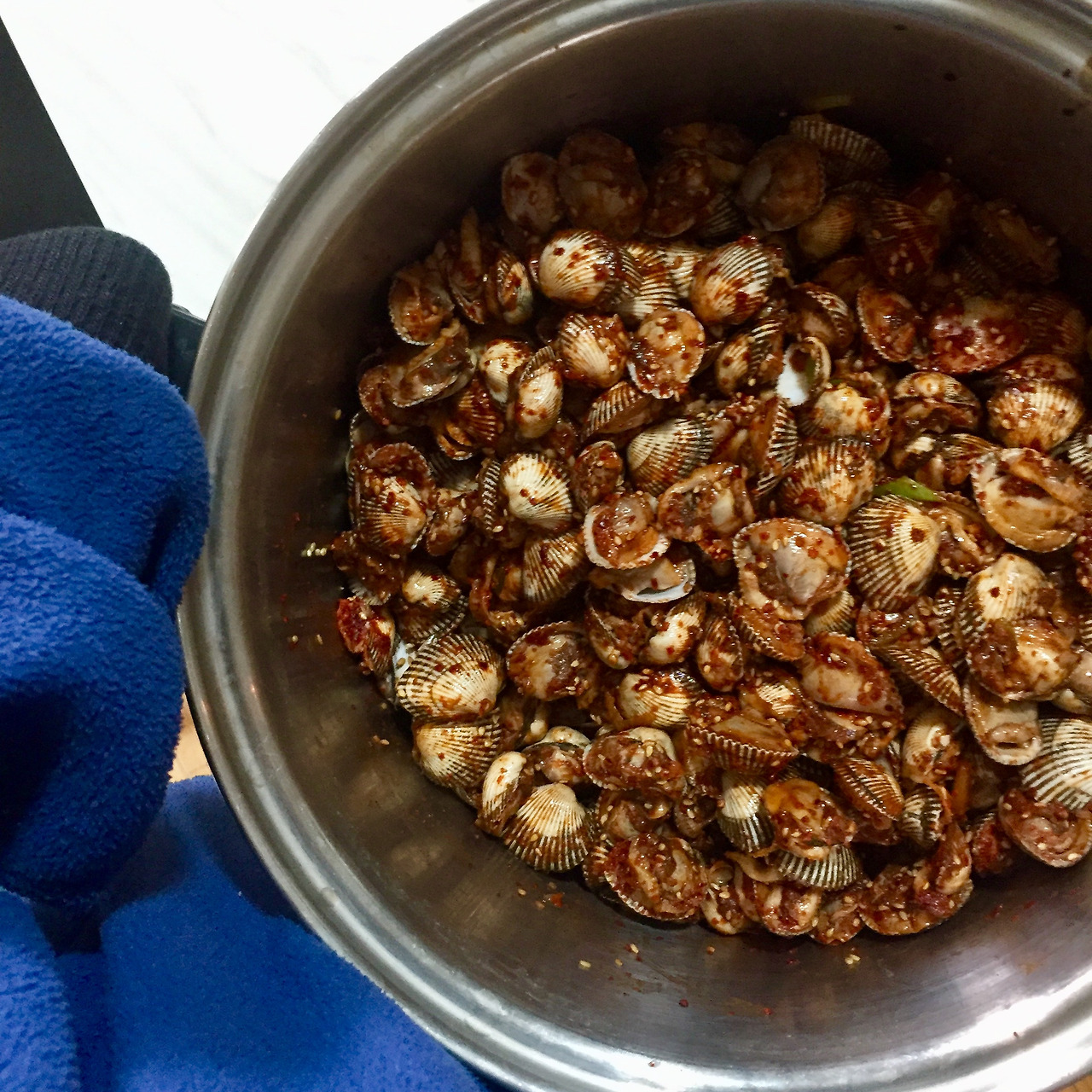 할머니는 밥집을 운영하시면서 오 남매를 키워오셨다. 우리 아빠는 오 남매의 넷째 아들이다. 우리 아빠를 이만큼 멋진 사람으로 자라게 해 준 것은 다 할머니의 손맛 덕분이다. 할머니, 아빠의 엄마, 또 나의 엄마. 아빠는 지금도 할머니의 꼬막 무침을 잊지 못하신다. 할머니가 아직까지도 팔을 걷어붙이시고 하시는 요리가 바로 꼬막 무침이다. 요즘에는 힘이 없어서 꼬막을 까는 것이 힘드시다며 나에게 꼬막을 좀 까달라고 부탁하신다. 나는 나보다 성격이 급하신 할머니가 꼬막과의 사투를 벌이다 화나시지는 않으실까 하는 마음 삼분의 일, 할머니의 손맛을 배우고 싶은 마음 삼분의 일, 설탕과 소금을 헷갈리시는 건 아닐까 하는 마음 삼분의 일을 가지고 꼬막 까기에 돌입한다.