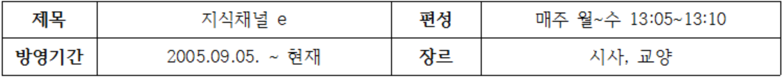 2000년대 중반, 시사 다큐 영역에서 다분히 기존의 제작 관행과 틀을 깨는 혁신적인 메시지 구성 형식의 사례가 나타나고 있다. 2004년 처음 등장한 EBS <지식채널e>이 바로 그 대표적인 프로그램이다.