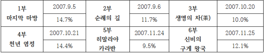 비록 KBS에서는 막을 내렸지만, <차마고도>의 이례적인 성과는 타 방송사들에게 충분히 자극이 되었다. 순수하게 수준 높은 다큐멘터리를 만들어보자는 욕심도 있었겠지만, 이미 <차마고도>의 행보는 ‘잘 만든 다큐멘터리가 대중성도 확보할 수 있다’는 것을 시청률이라는 수치로 입증한 셈이었다.