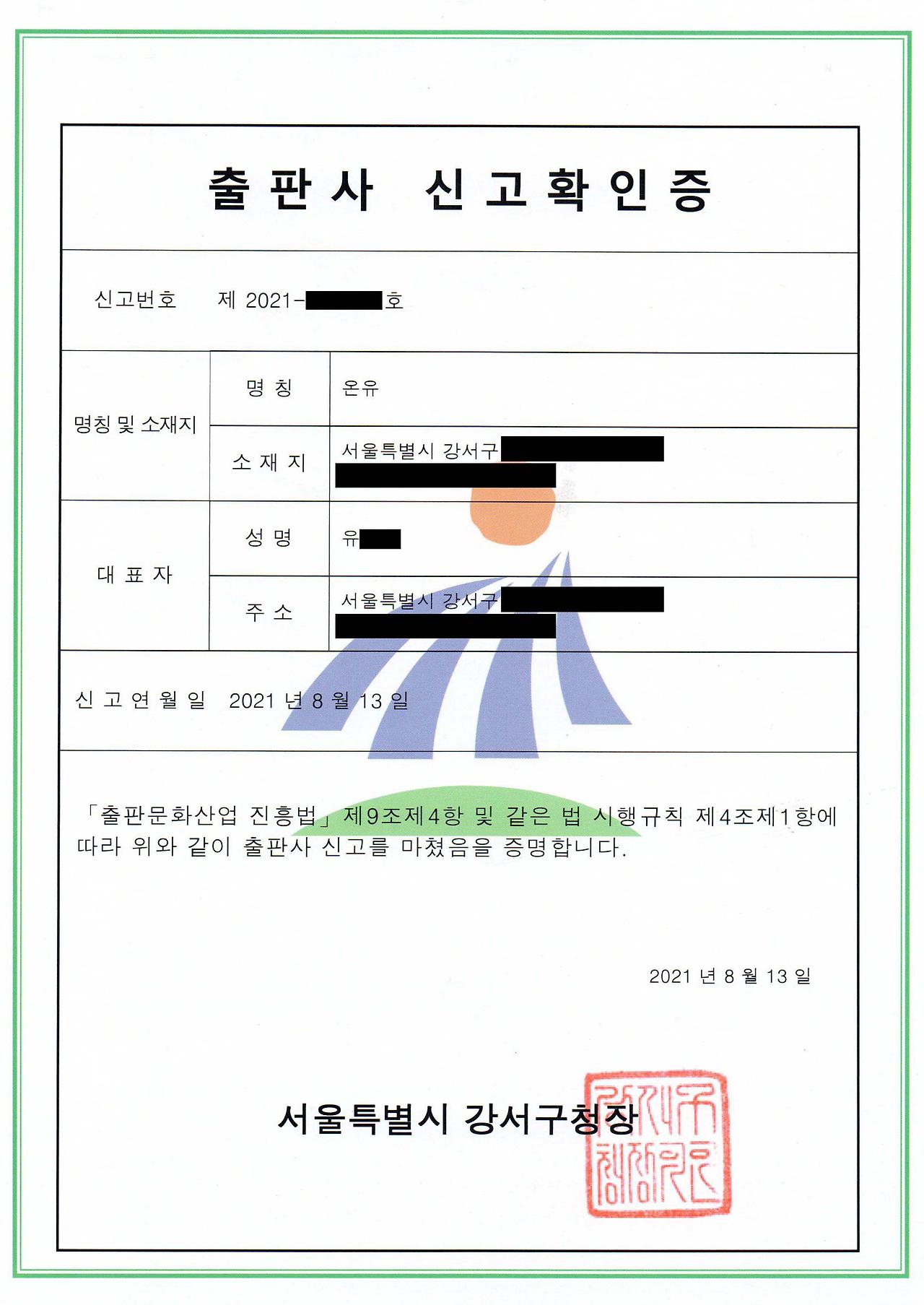 면허세는 매년 초에 1번씩 의무적으로 지출되는 비용이므로, 날짜를 먼저 확인해 보고 만드시길 권장 드립니다. Ex) 2021년 12월에 출판사를 신고하면, 12월에 한 번, 다음 년 2022년 1월에 한 번 더 면허세를 납부해야 하므로 약간 손해 보는 느낌.