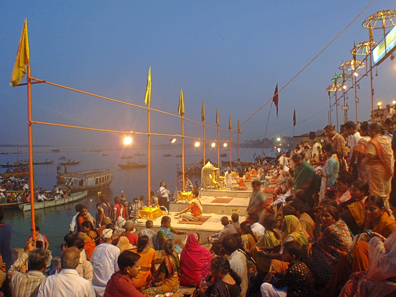 저녁 7:30 푸자(Puja, 힌두교식 예배)가 열리는 메인 가트로 나갔다. 이곳에서만큼은 여행자보다 힌두교 신자들이 절대다수를 차지한다. 브라만 청년들이 앉아서 명상을 하는 동안 사람들은 의식에 관련된 굿즈를 사거나 강물에 소원을 빌며 디아(dia, 촛불 바구니)를 띄웠다. 가트에 자리를 잡은 사람도 있었고, 보트를 타고 강가로 나가서 구경하는 사람도 있었다. 예배는 힌두식으로 경건하지만 화려하게 진행되었다. 소리의 힘을 믿는 이 민족은 만트라도 잊지 않고 꾸준히 읊었다. 바라나시는 그렇게 그들의 도그마 속으로 더 깊이 가라앉고 있었다.