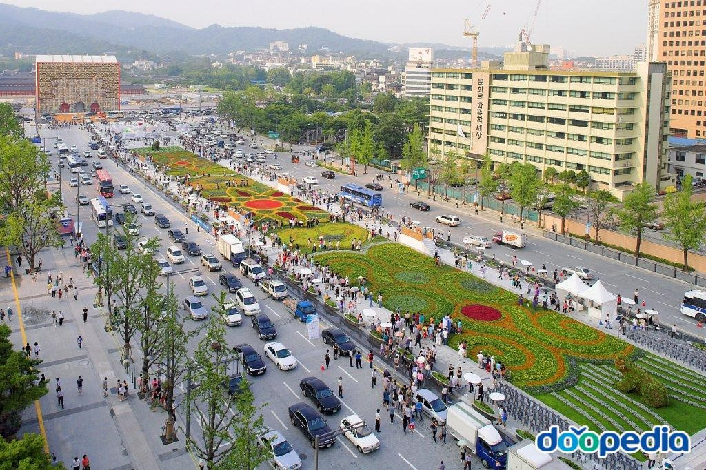 서울의 광화문 광장과 뉴욕의 타임스퀘어 (사진 출처: 두산백과)