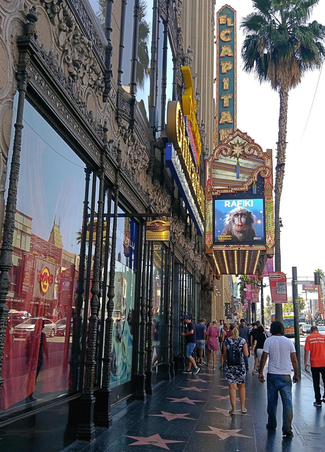 할리우드 대로에는 영화, 음악 등 엔터테인먼트 산업에 공헌한 유명인들의 이름이 바닥의 별 위로 촘촘하게 박혀 있다. 이 별들의 행진은 할리우드 스타의 손발 도장이 찍혀 있는 TCL 차이니즈 극장(TCL Chinese Theatre)까지 이어진다. 배우는 없는데 마치 그 배우를 직접 만나서 악수하고 사인까지 받은 기분이다.